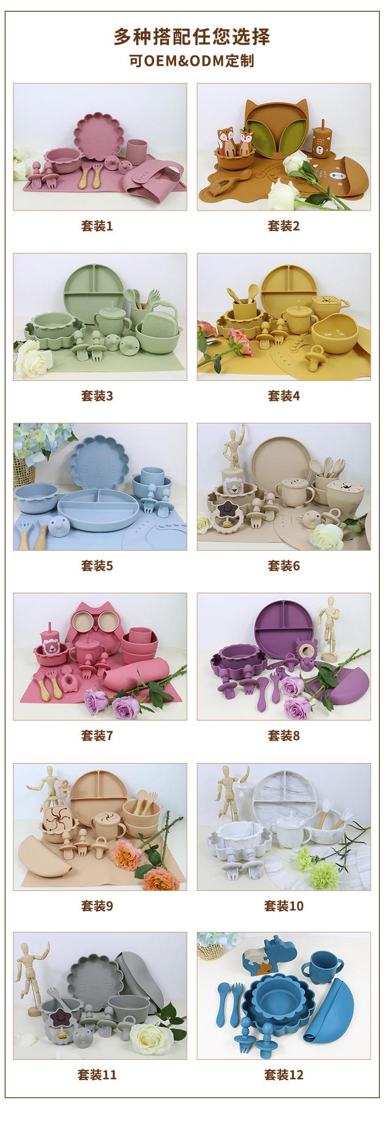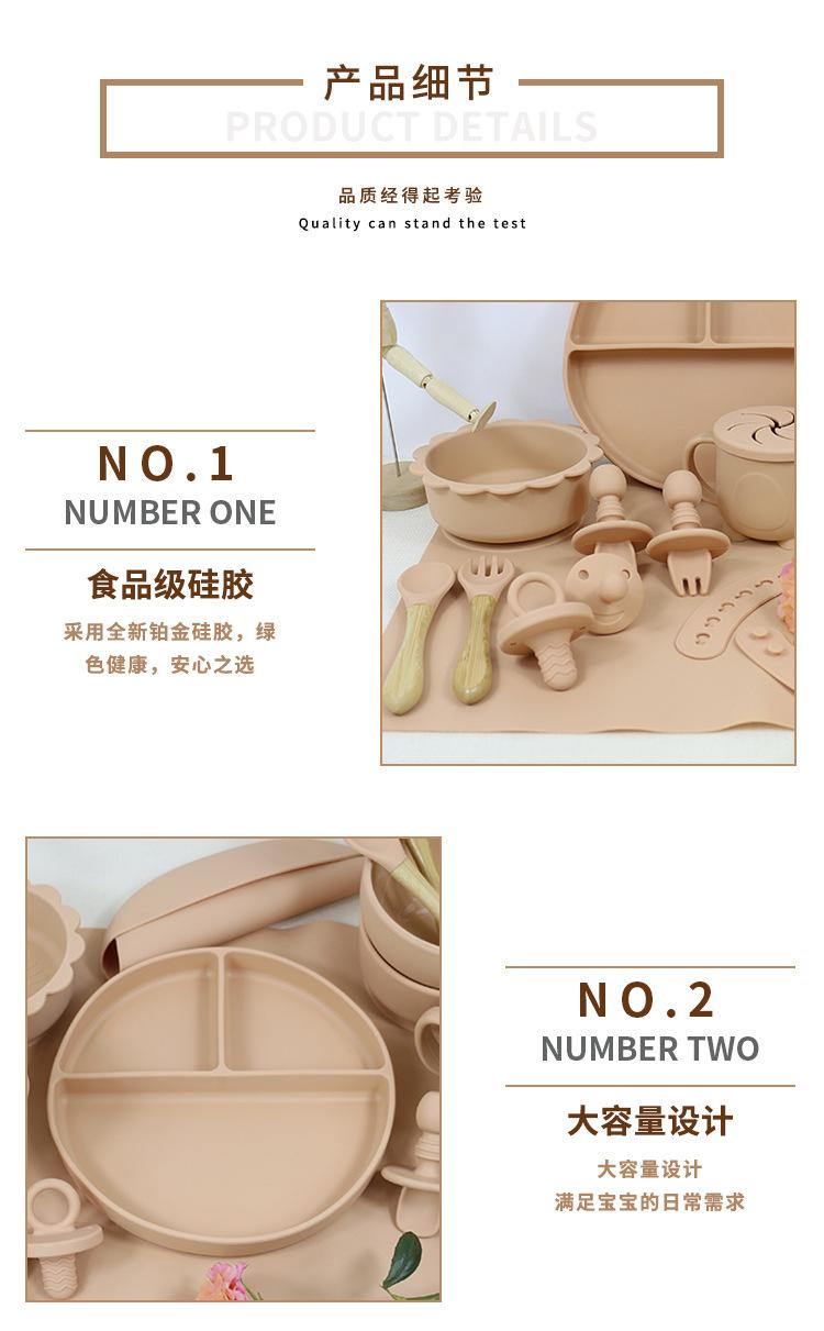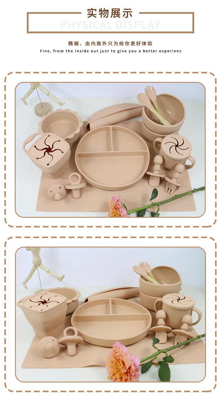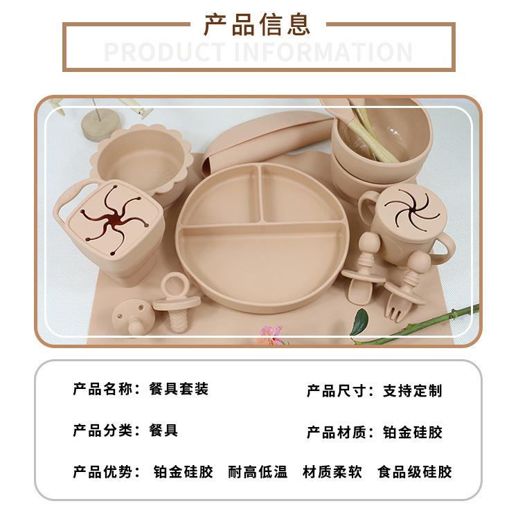 Vajilla infantil de silicona platino de grado alimenticio personalizada, set de alimentación complementaria para bebés, anticaída, a juego, naranja opcional, caja de regalo