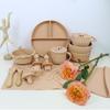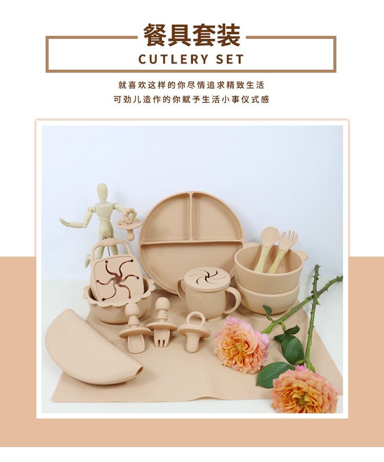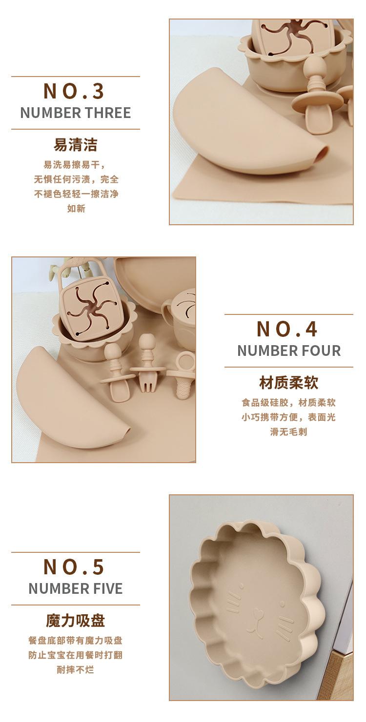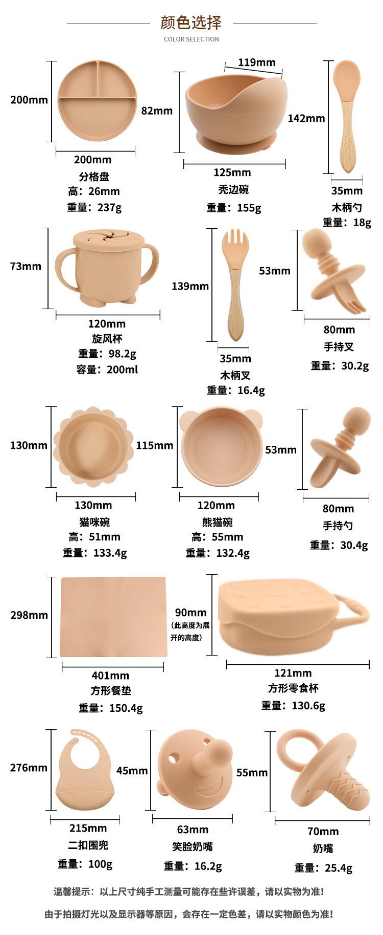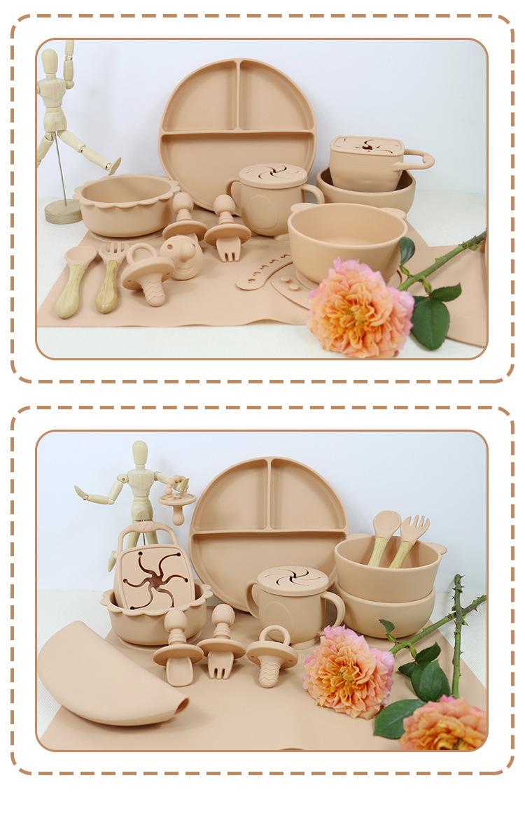 Vajilla infantil de silicona platino de grado alimenticio personalizada, set de alimentación complementaria para bebés, anticaída, a juego, naranja opcional, caja de regalo