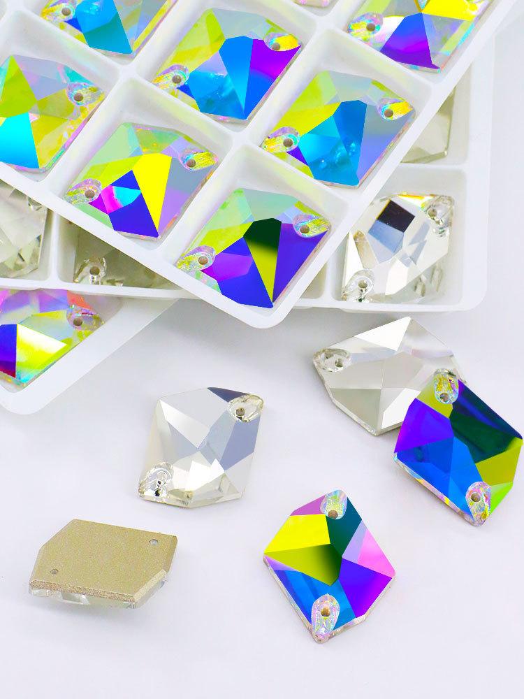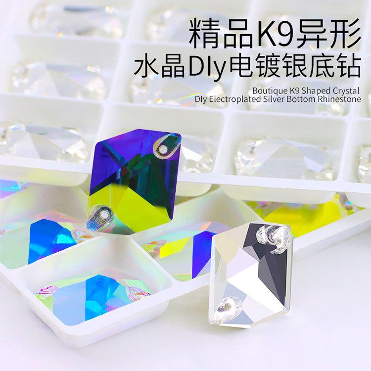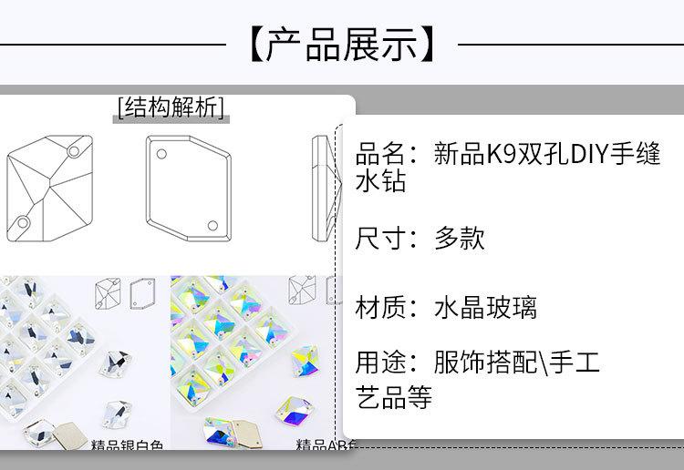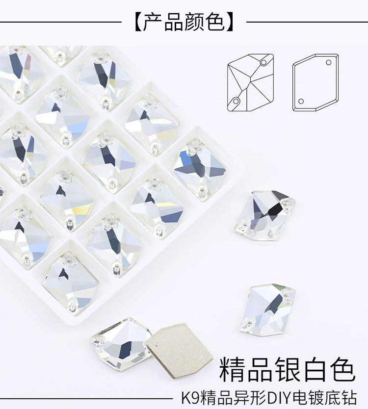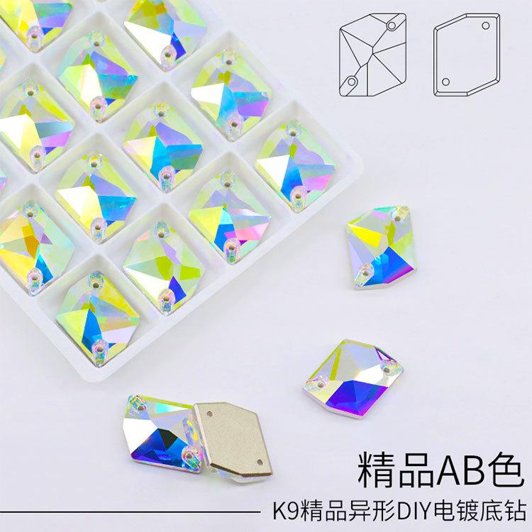 Cristal K9 de Alta Gama Blanco Brillante AB Forma Plana Taladro Cosido a Mano Vidrio de Taladro de Doble Agujero Taladro DIY Accesorios para Zapatos Taladro