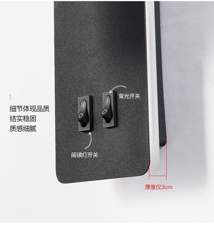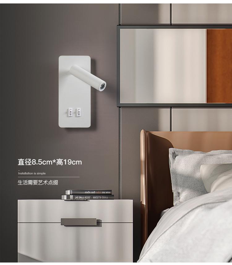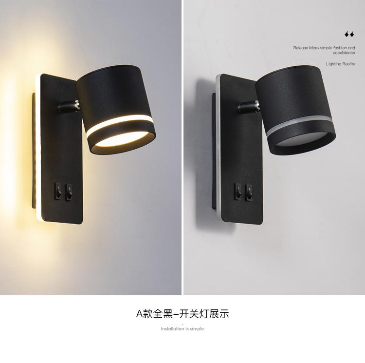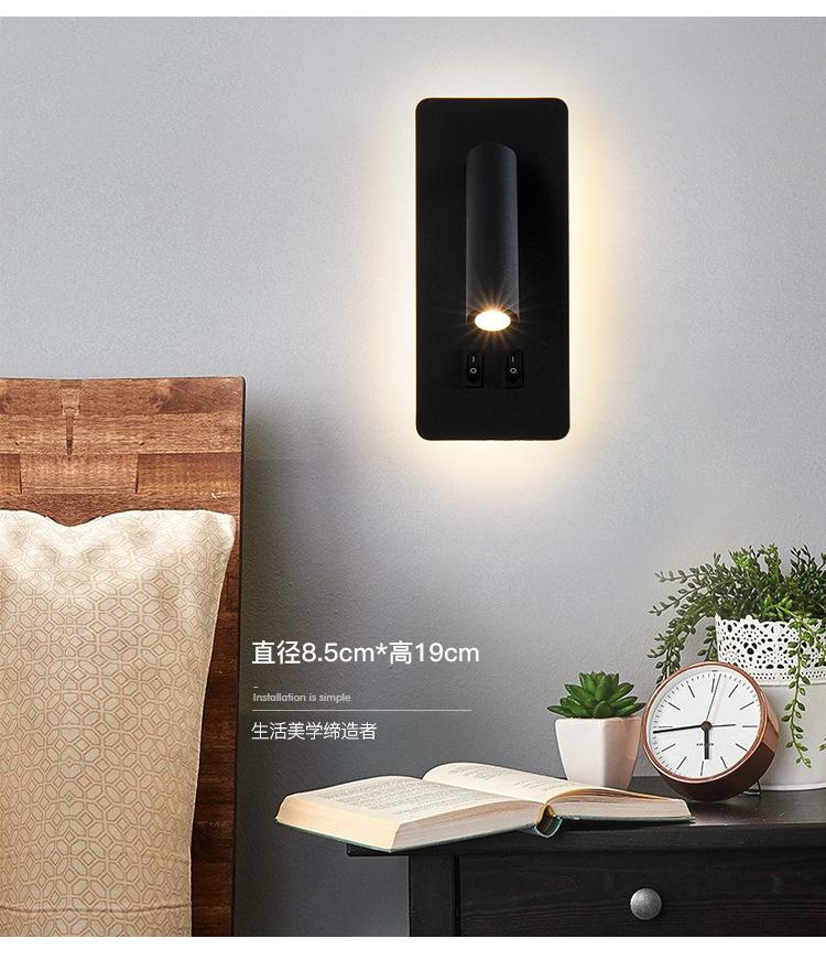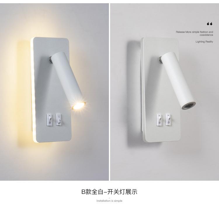 Lámpara de Pared Transfronteriza Cuadrada Dormitorio Mesita de Noche Escandinava Moderna Simple Creativa Tira con Interruptor Foco de Lectura LED
