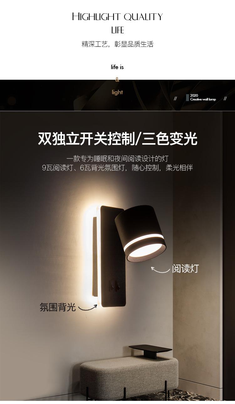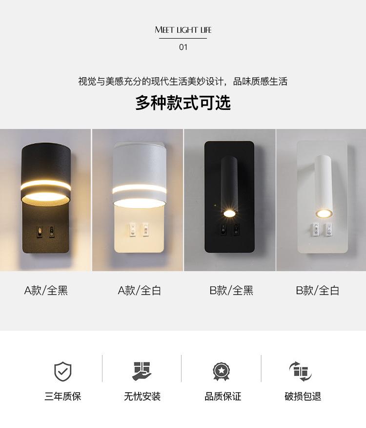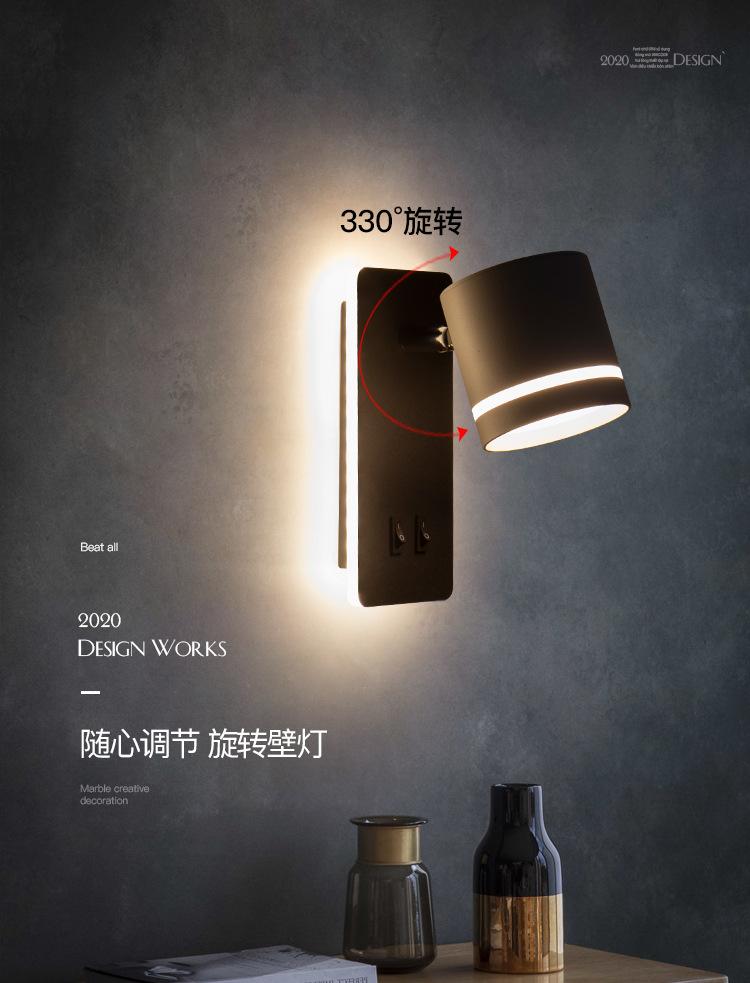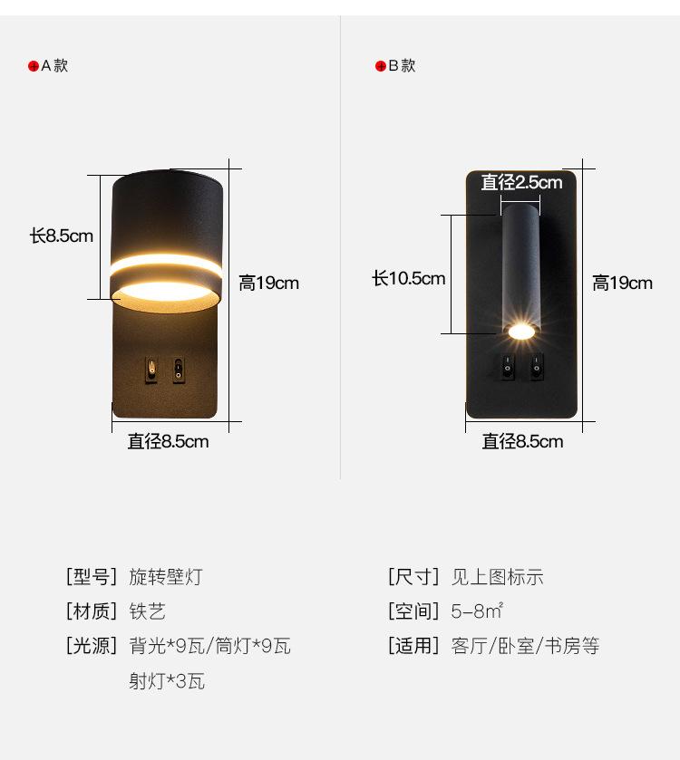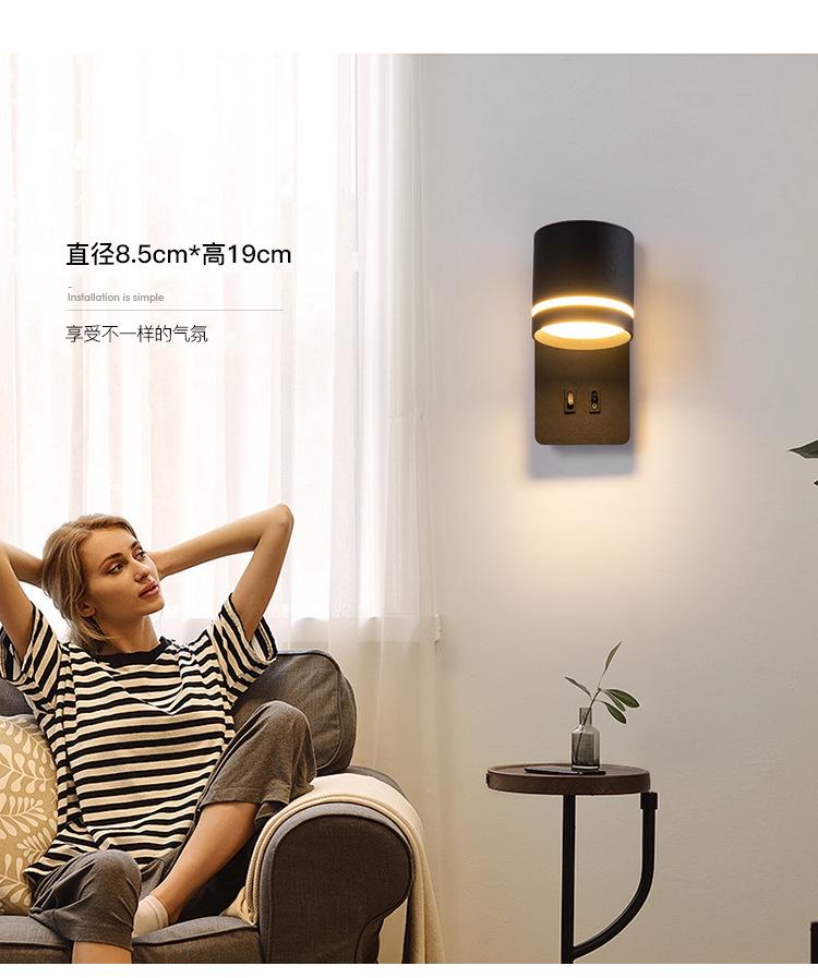 Lámpara de Pared Transfronteriza Cuadrada Dormitorio Mesita de Noche Escandinava Moderna Simple Creativa Tira con Interruptor Foco de Lectura LED