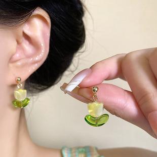 Pendientes de tulipán dulce y fresco con aguja de plata para mujer, pendientes de flor de hada súper simples y pequeños, pendientes de bosque elegantes