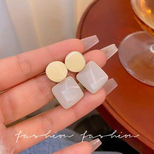 Pendientes de viajero de moda con esmalte de goteo de color de contraste para mujeres 2024, nuevos pendientes de personalidad exagerada, los pendientes cuadrados hacen que tu rostro se vea pequeño