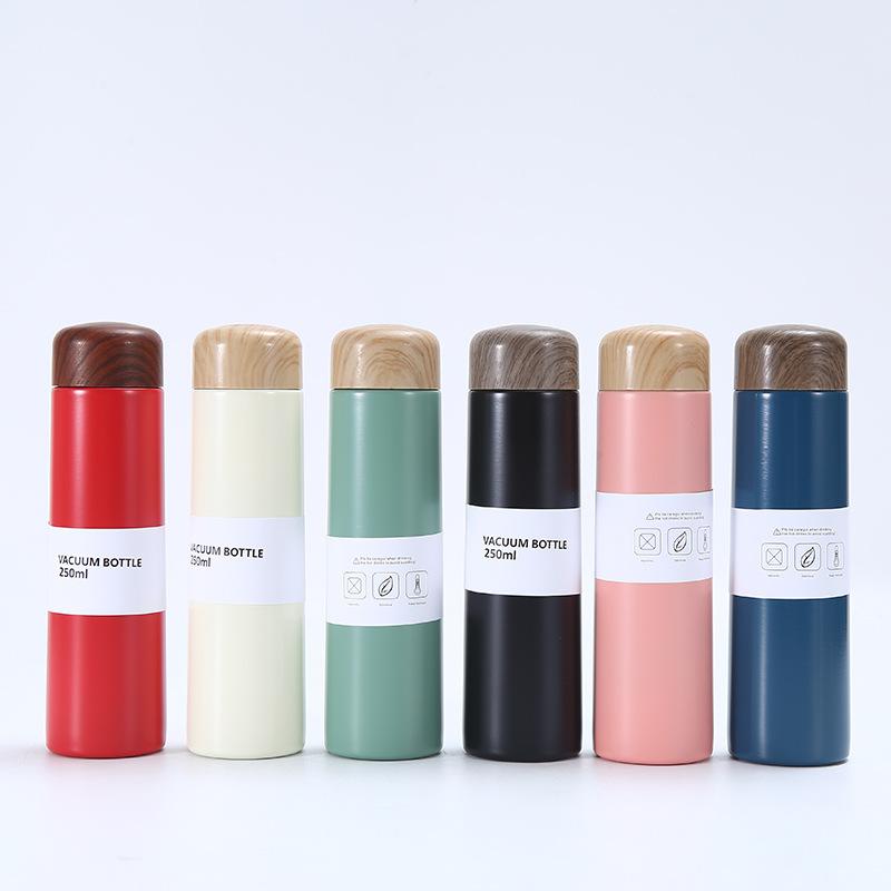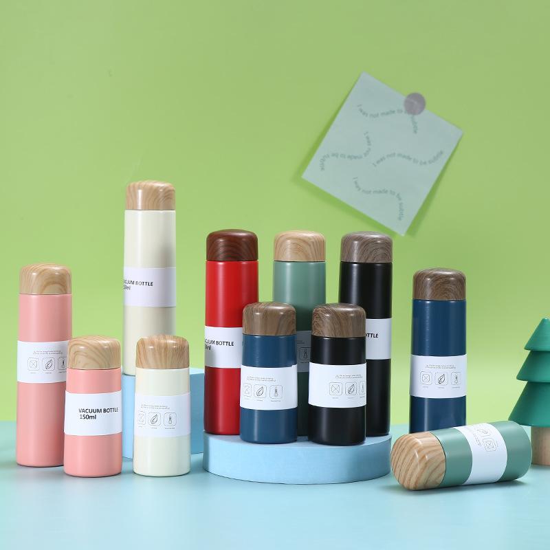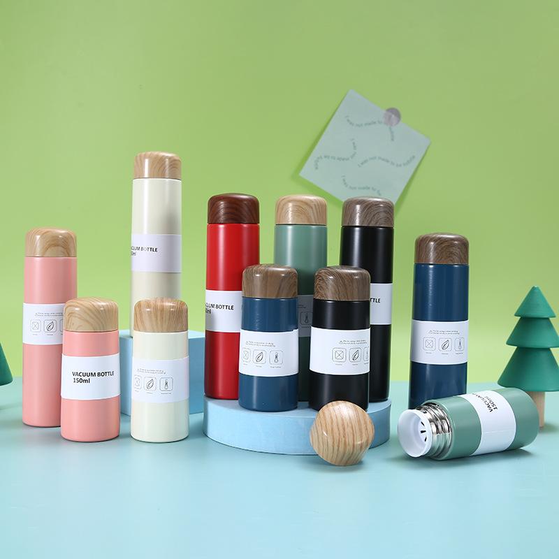Nueva taza de vacío de acero inoxidable 304 con cubierta de veta de madera, mini taza de regalo, taza de bolsillo pequeña portátil para exteriores, venta al por mayor
