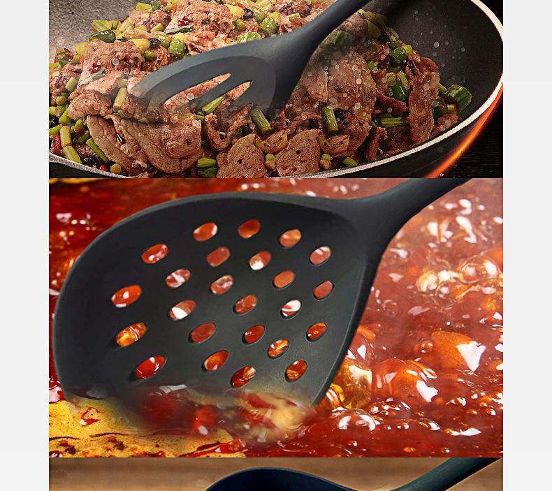 Juego de utensilios de cocina de silicona de grado alimenticio, resistente a altas temperaturas, para el hogar, sartén antiadherente, cuchara y pala para cocinar, utensilios de cocina personalizados.