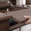 Mueble de TV de lujo nórdico ligero de nogal negro con combinación de mesa de centro estilo wabi-sabi de madera de cerezo, armario de almacenamiento moderno y sencillo