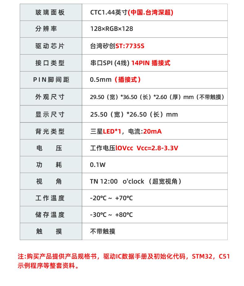1.44inch tn(st7735/spi serial port/14pin welding), 1.44inch tn(st7735/spi serial port/14pin plug-in)