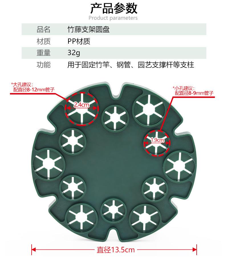 Placa de bambú para jardín, marco de fijación de tubo de acero plástico, soporte para plantas, pilar de disco de bambú verde, marco de escalada para jardinería, venta al por mayor
