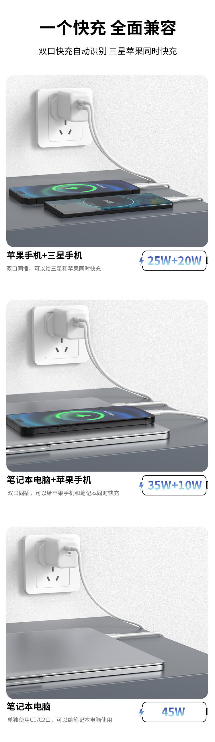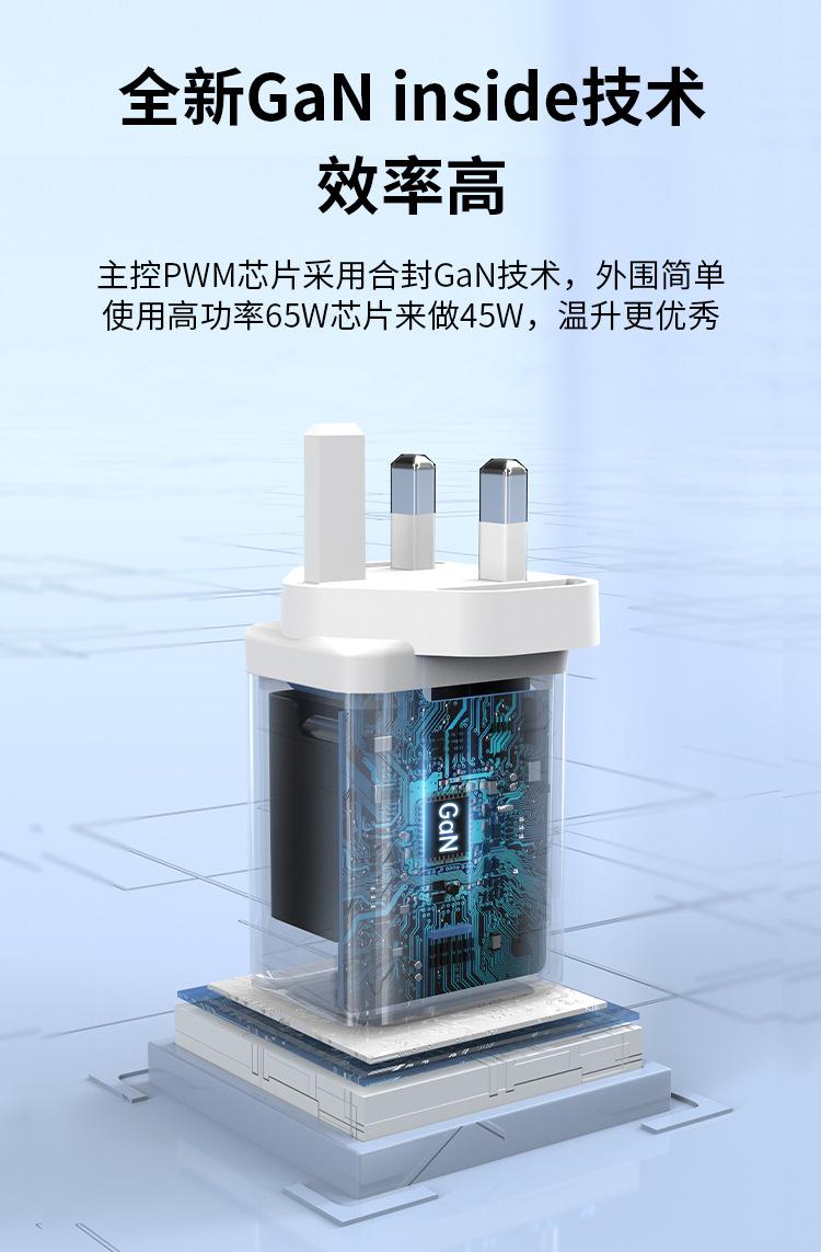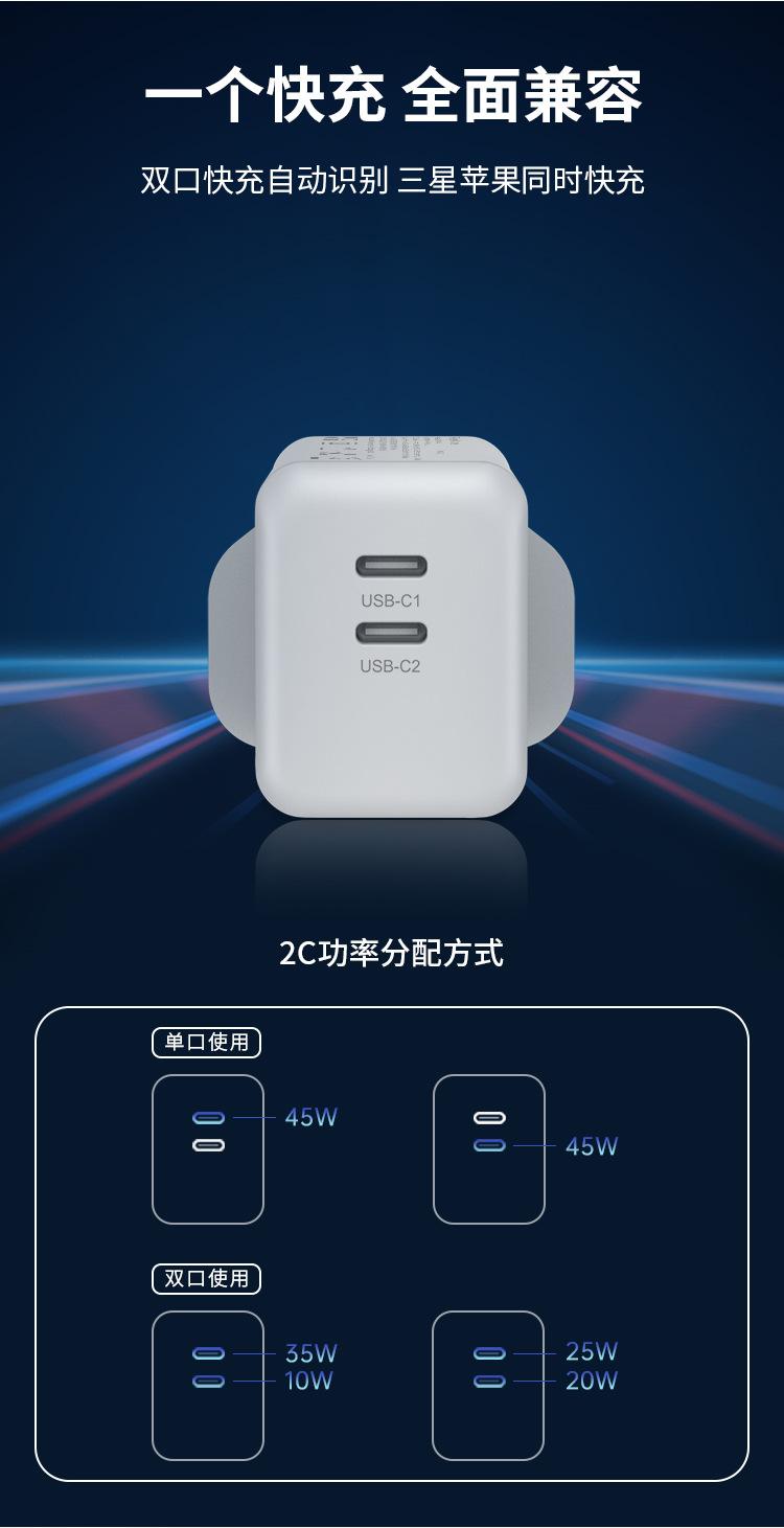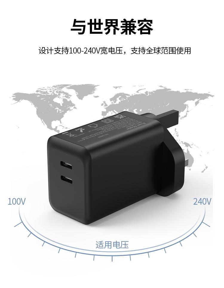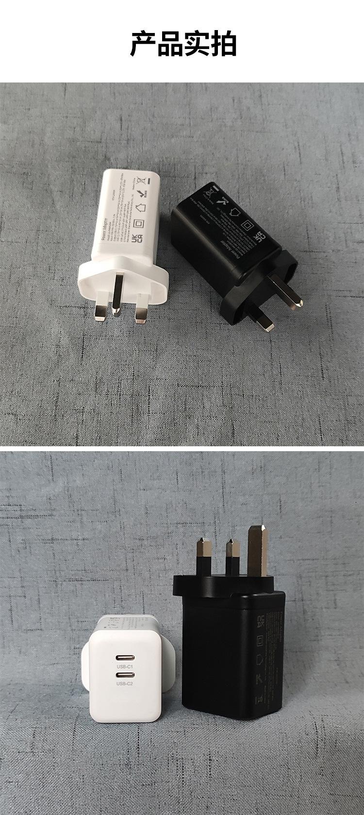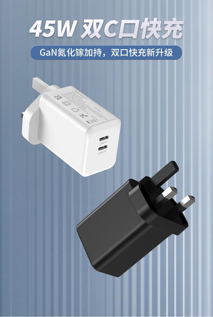 Cargador de carga rápida PD45W dual C para Reino Unido, certificado por UKCA, doble USB-C, cabezal de carga para teléfono móvil GaN de nitruro de galio estándar británico