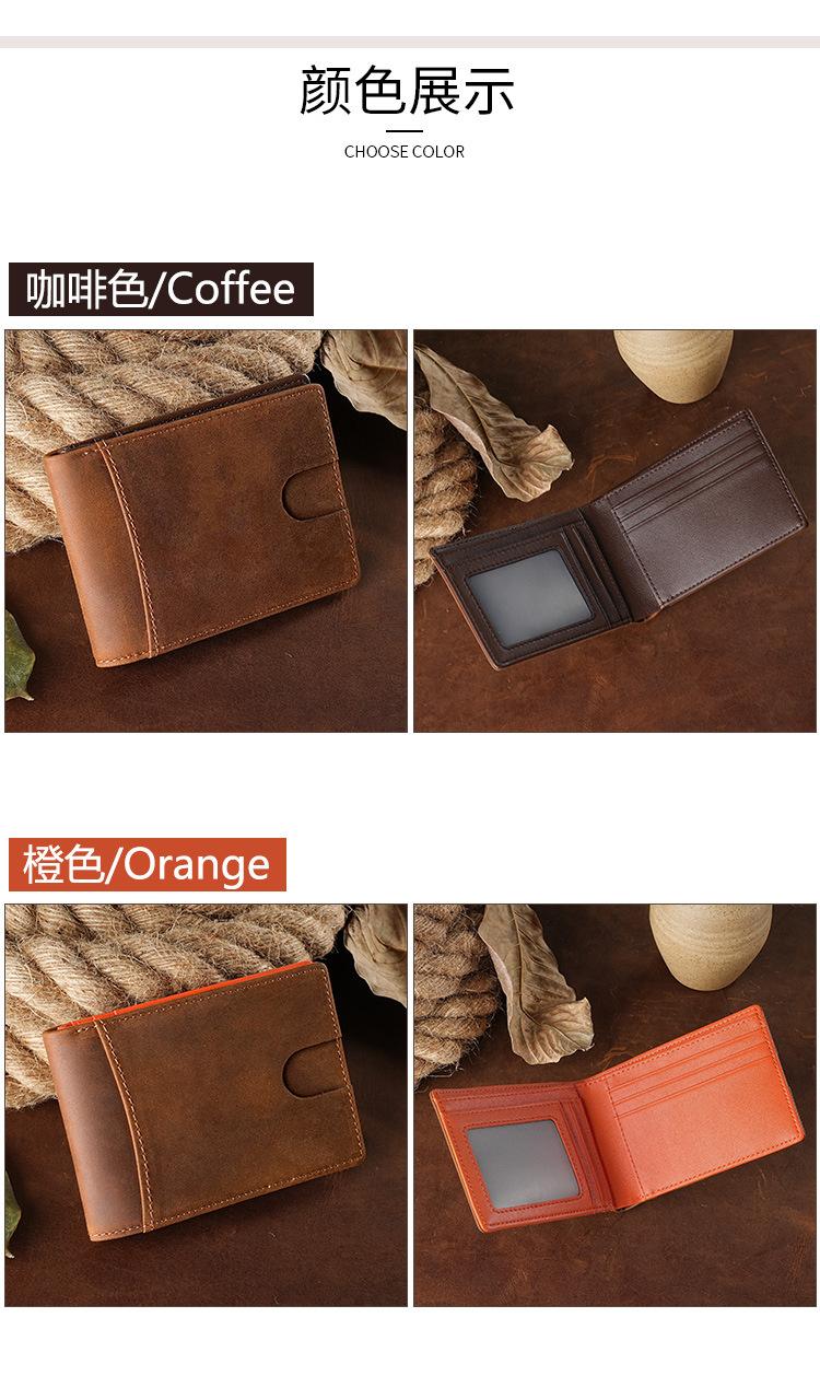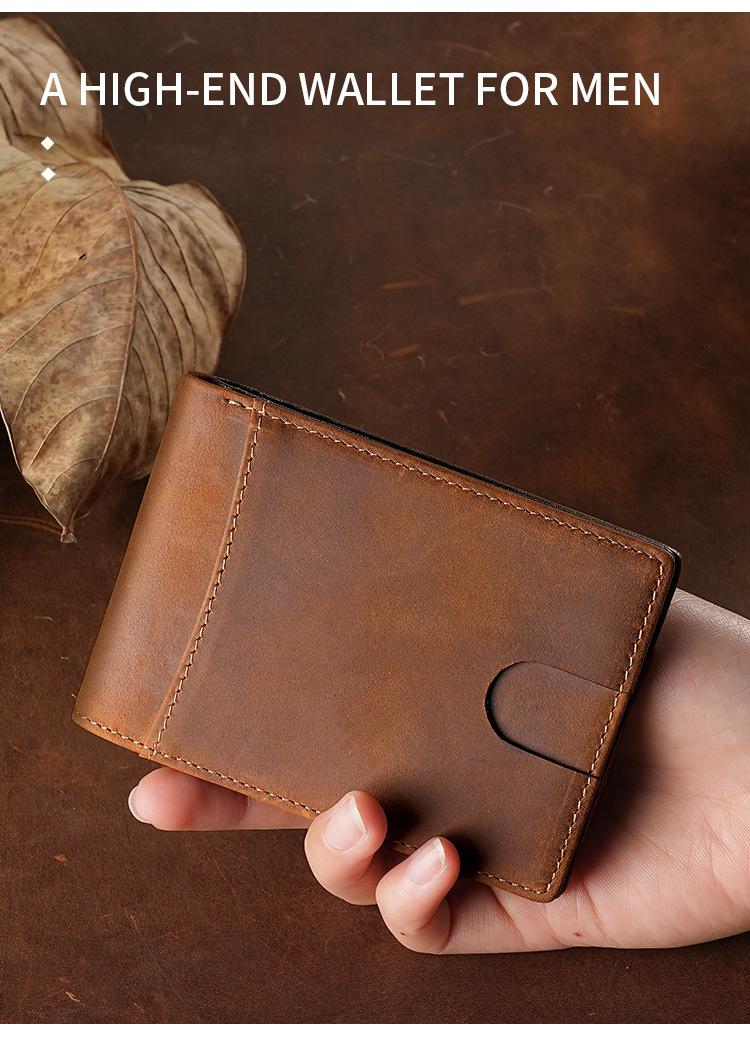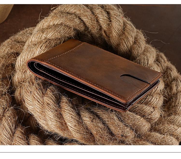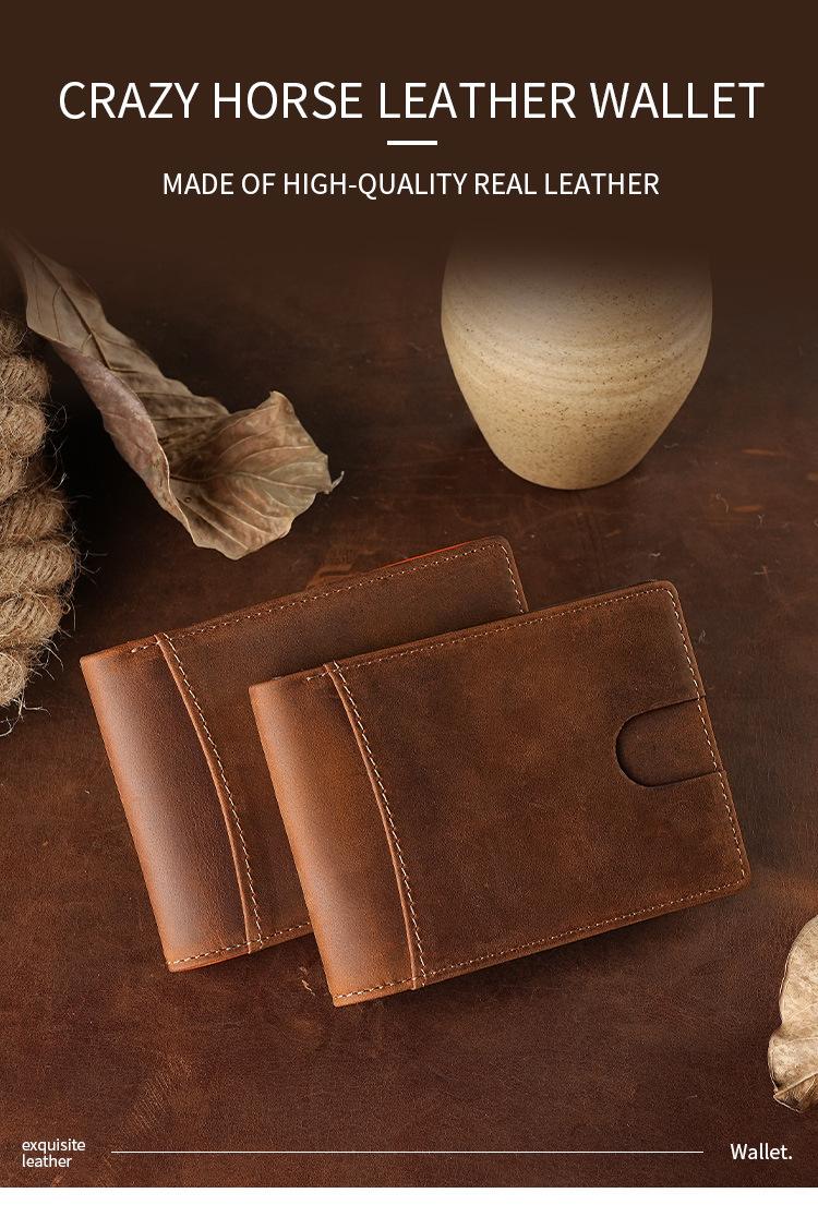Cartera Retro Europea y Americana de Cuero Crazy Horse para Hombre, Cartera Corta, Antirrobo RFID, Capa de Cepillado, Cuero Vacuno, Cartera de Hombre