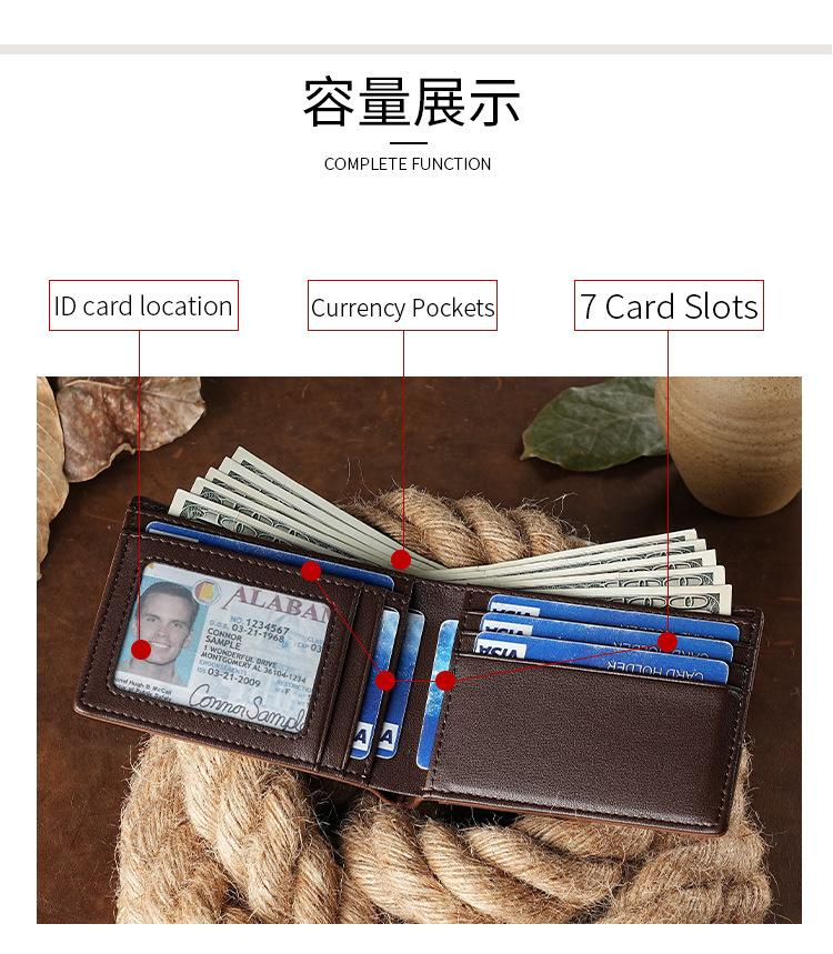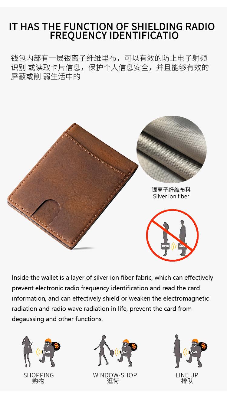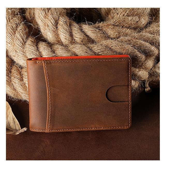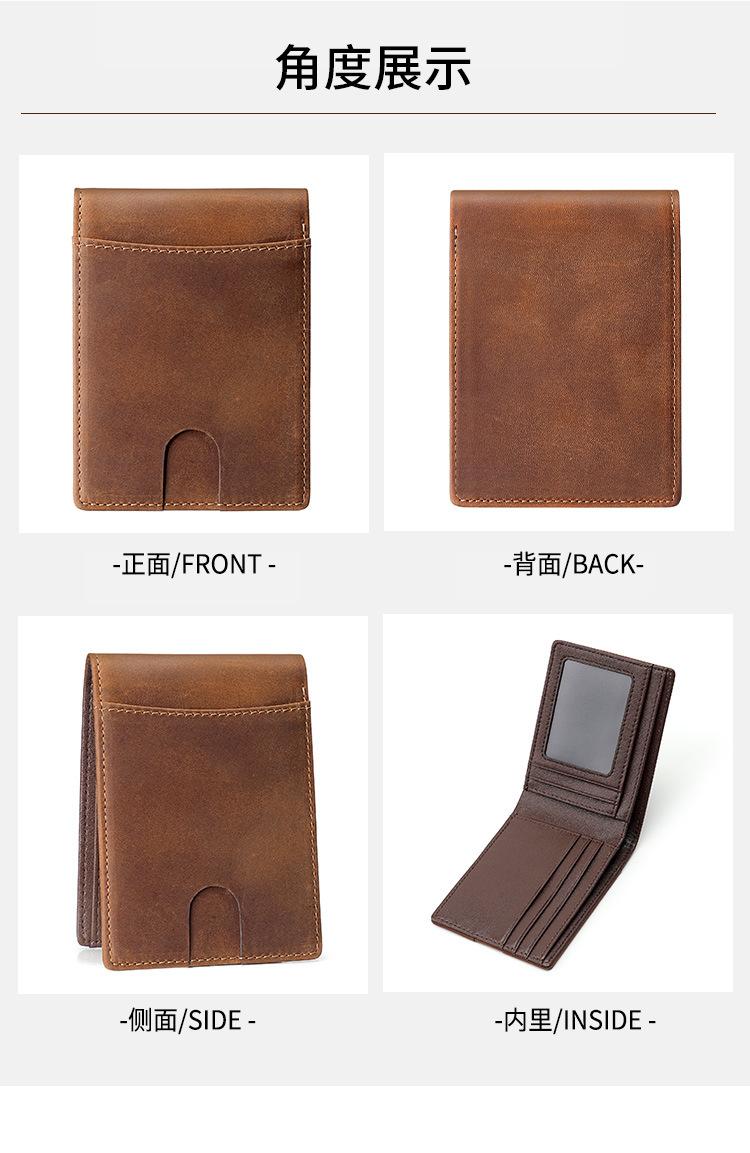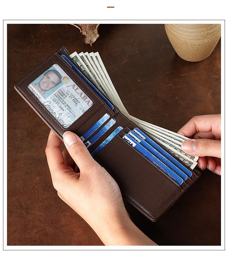 Cartera Retro Europea y Americana de Cuero Crazy Horse para Hombre, Cartera Corta, Antirrobo RFID, Capa de Cepillado, Cuero Vacuno, Cartera de Hombre