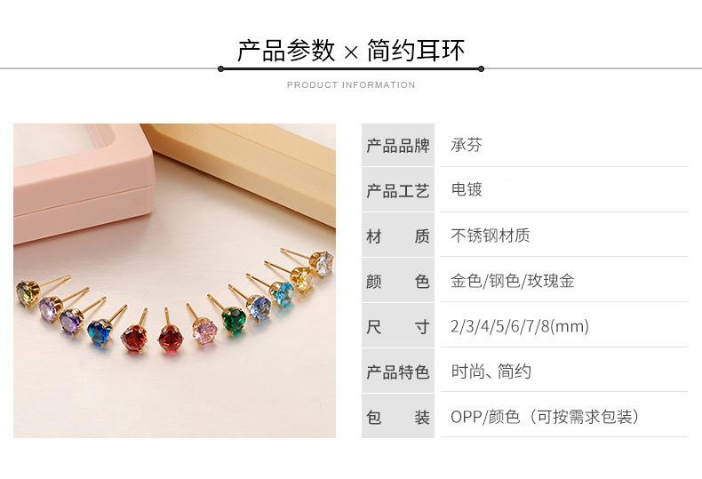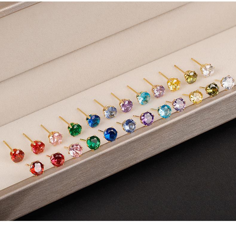 Compra Doce aretes mini de tuerca de piedra de nacimiento estilo ins japonés y coreano color circón granate Esmeralda aretes de acero inoxidable al por mayor en Joom.pro