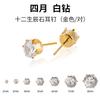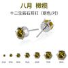 Doce aretes mini de tuerca de piedra de nacimiento estilo ins japonés y coreano color circón granate Esmeralda aretes de acero inoxidable