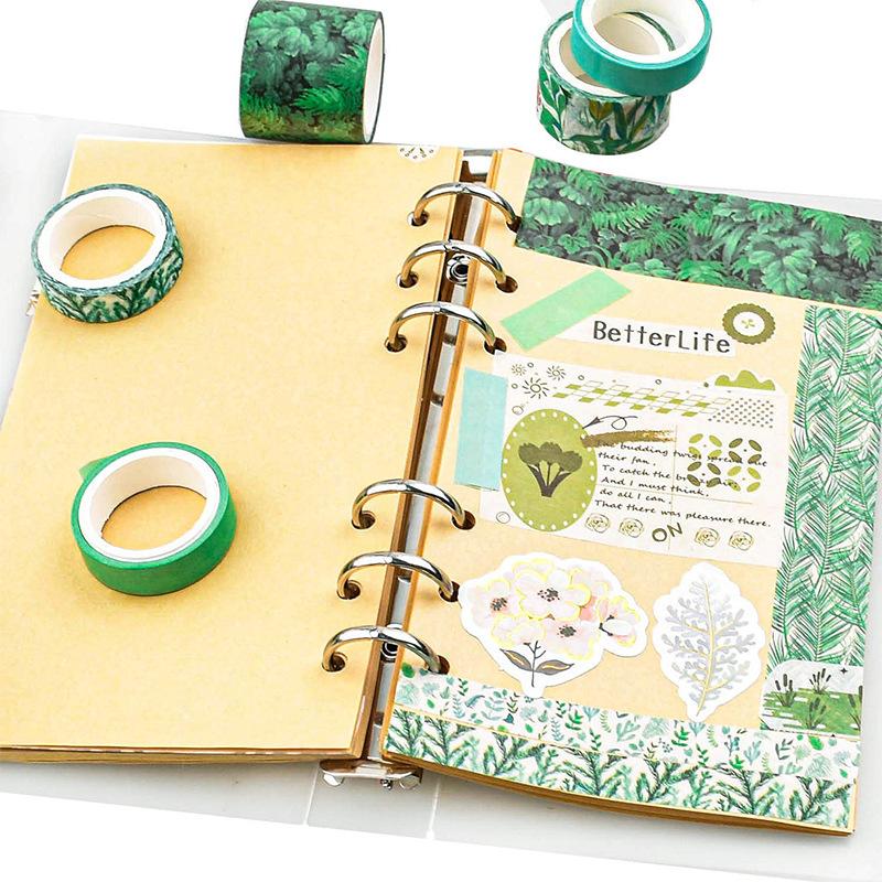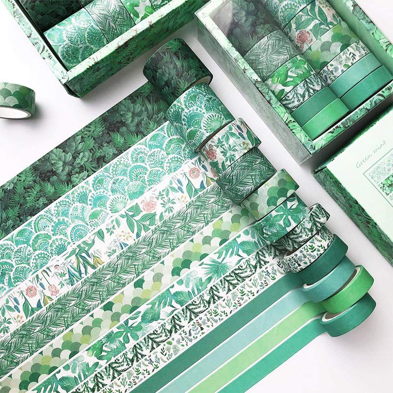 Traje de estilo retro verde y cinta de papel para DIY, pegatinas decorativas para diario, cinta creativa para diario, juego completo de materiales