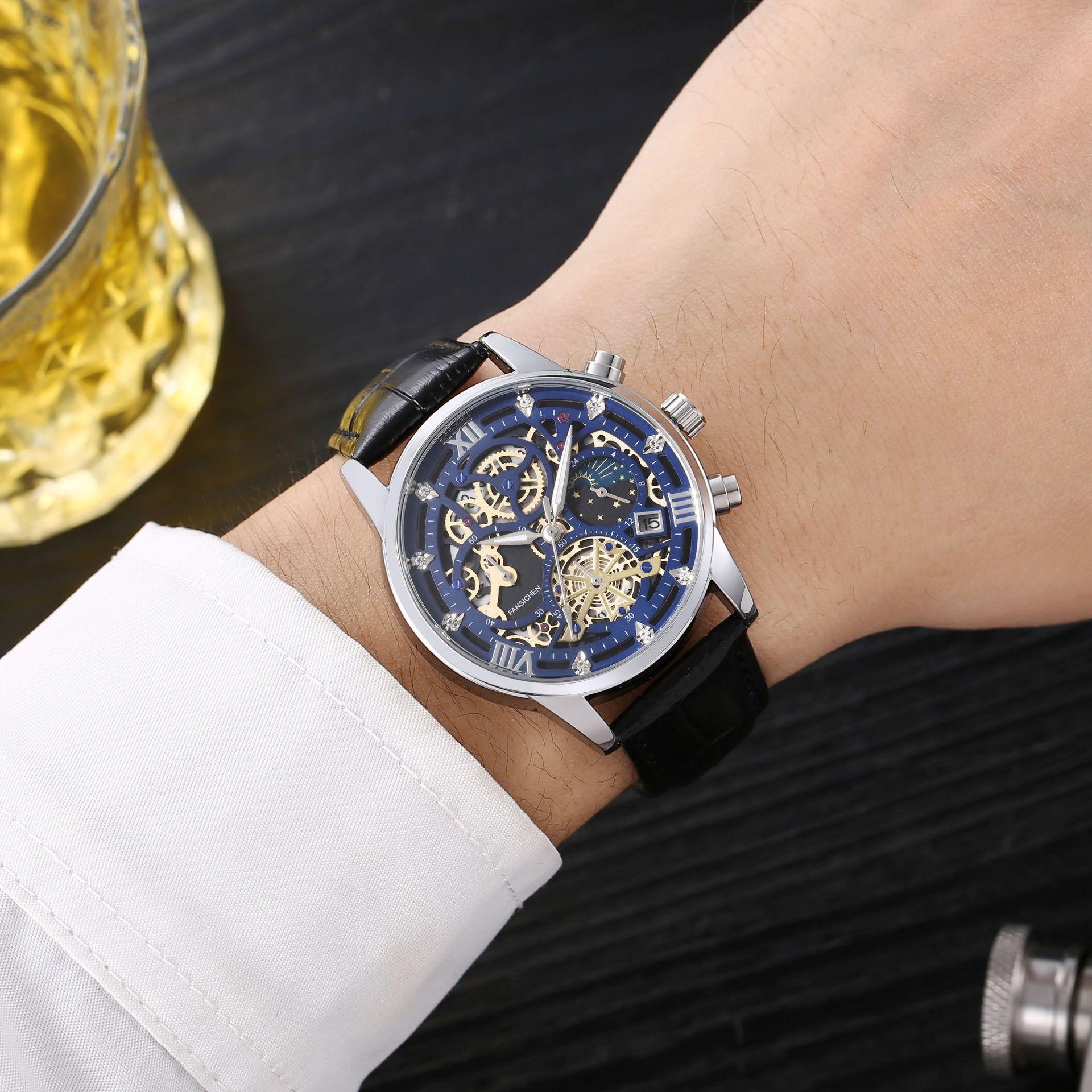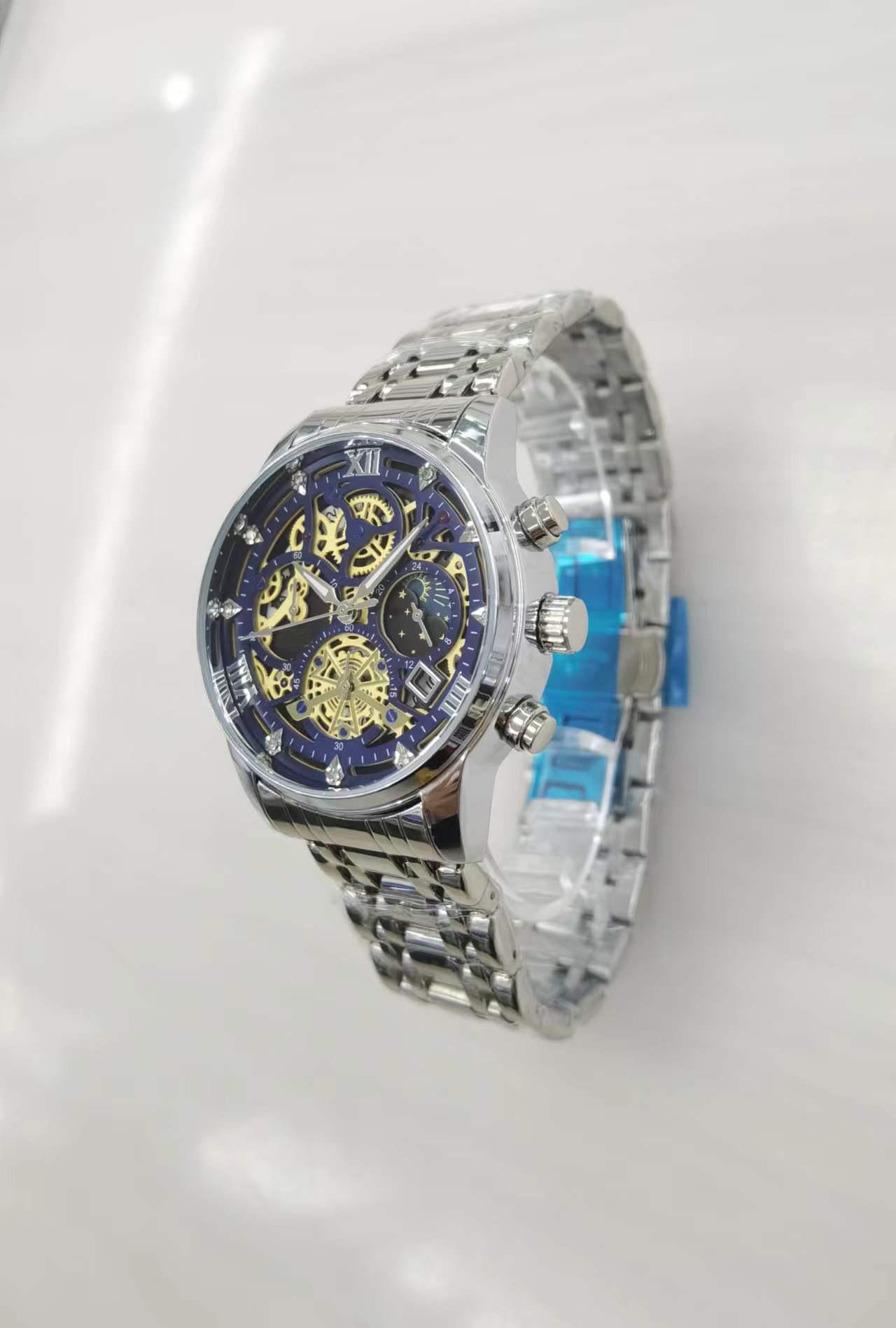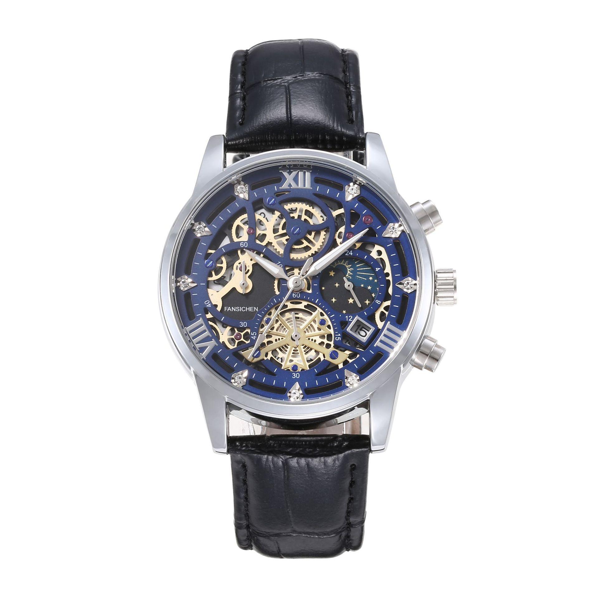 Reloj de Hombre Richard Calendario Hueco Reloj de Cuarzo Acero Inoxidable Multifuncional Seis Agujas Resistente al Agua Negocios Impermeable