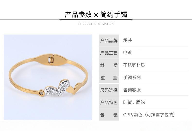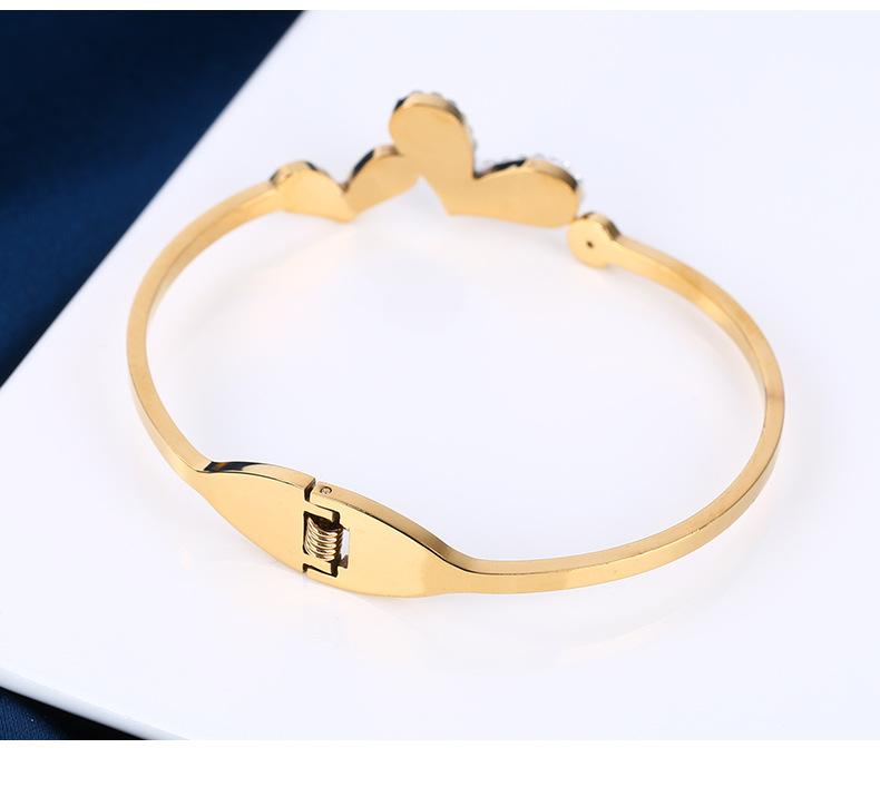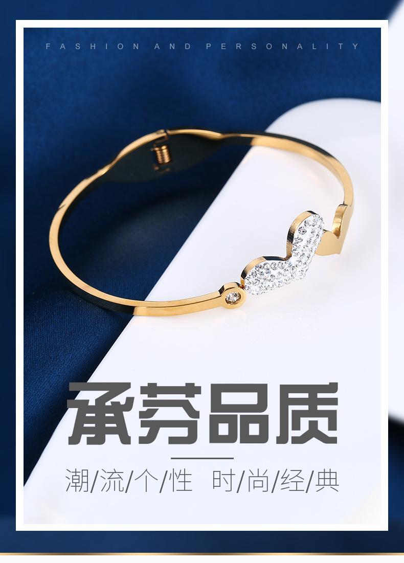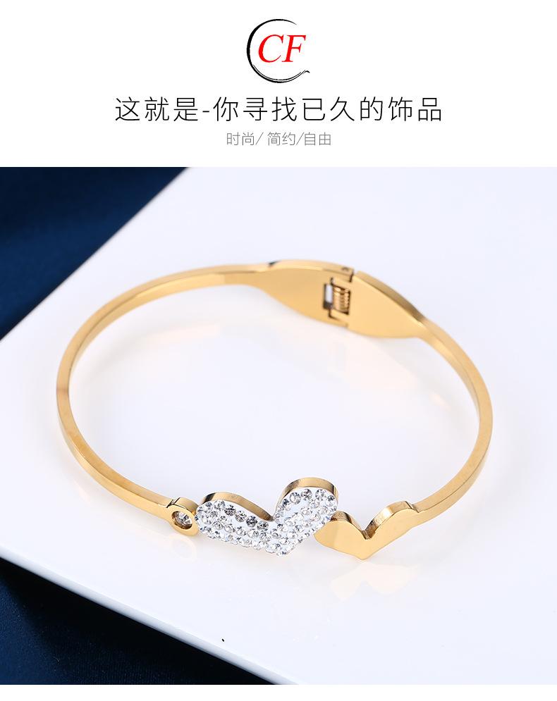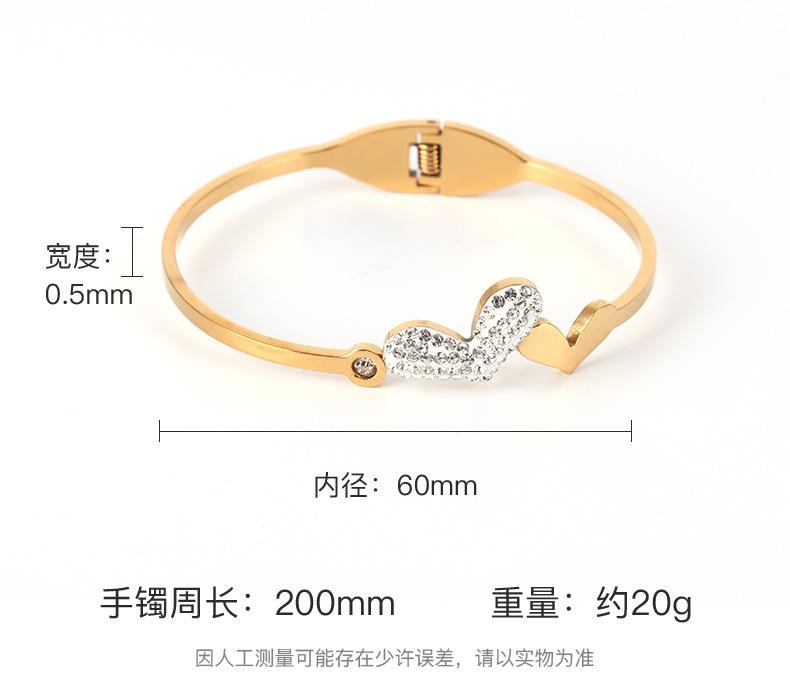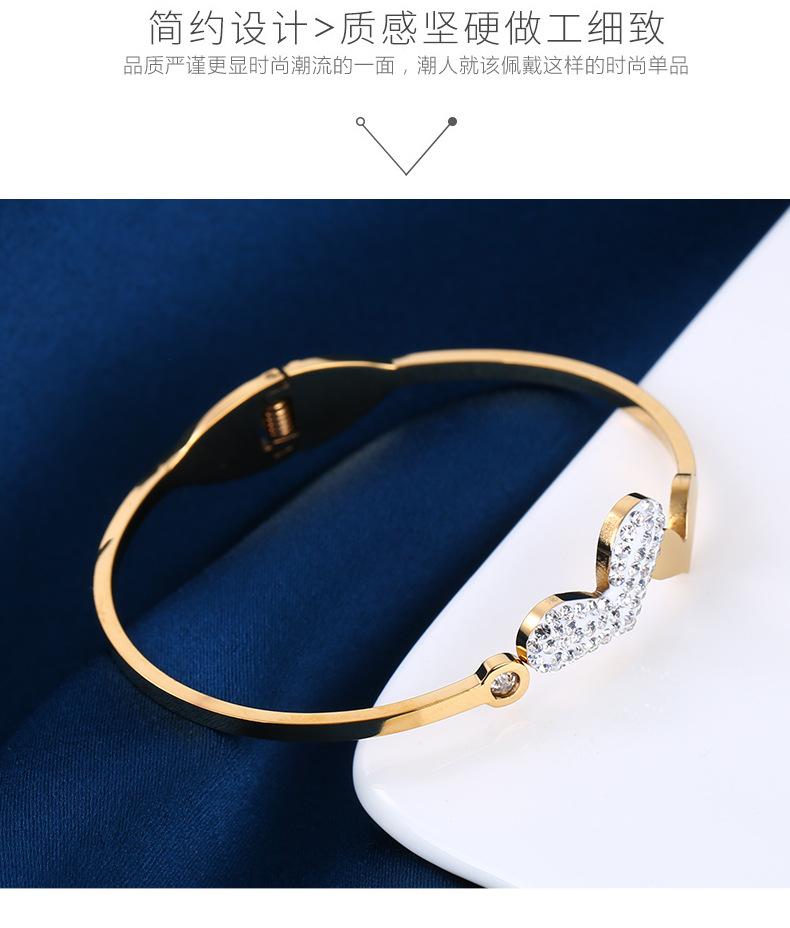 Pulsera de acero de titanio con hebilla de amor estilo ins europeo y americano, moda para mujer, atmósfera, cristal, diamante, forma de corazón, lisa, acero inoxidable, adornos de mano
