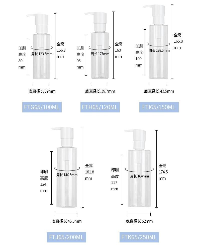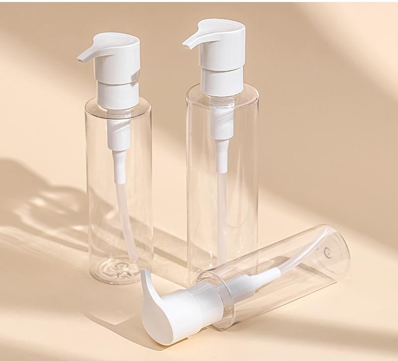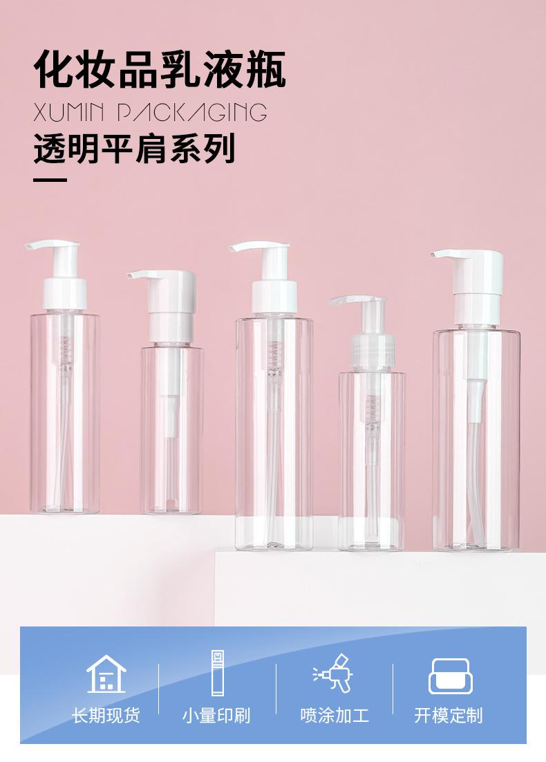 Envase Xumin en stock, botella de plástico transparente con bomba de presión, botella de loción de 100-250 ml, subbotella de prensa cosmética