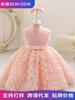 Vestido infantil nuevo europeo y americano para niña, con hombros descubiertos y tirantes, falda de pastel con empalme de flores tridimensionales, disfraz de actuación de banquete para niña