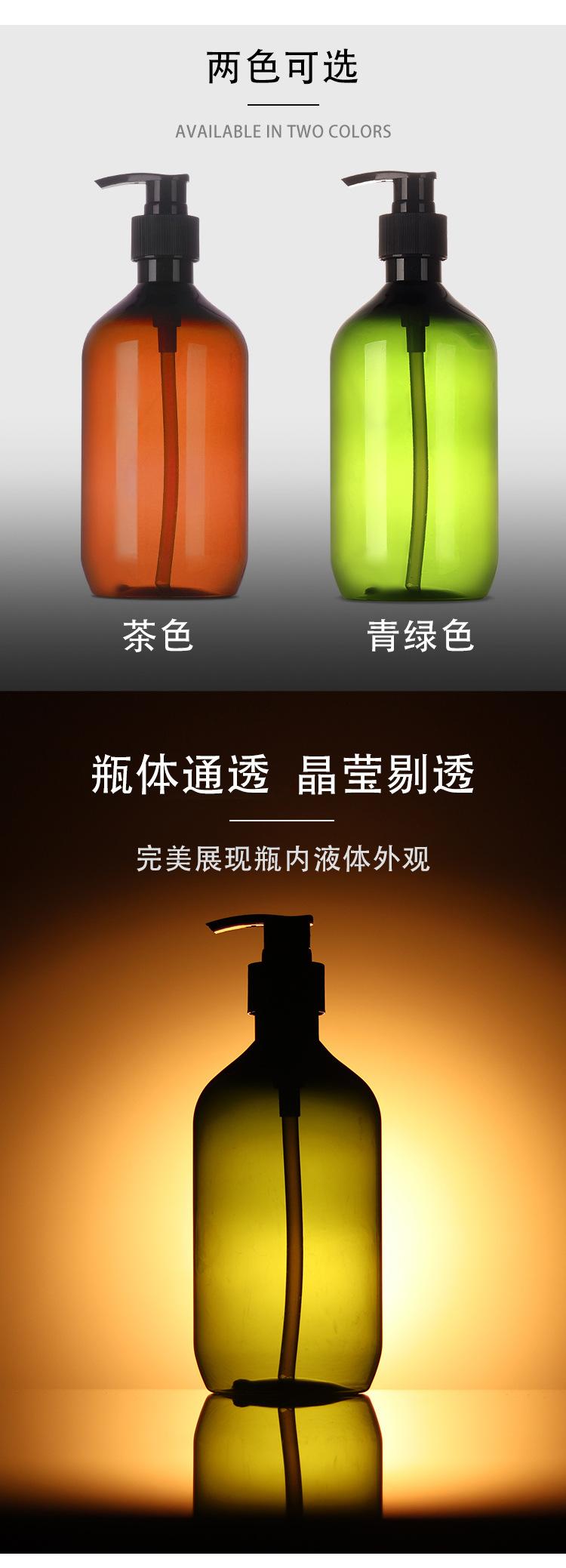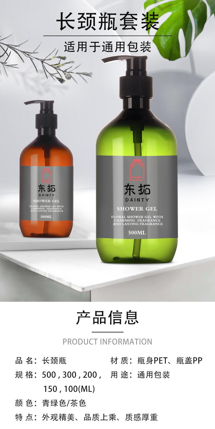 Botella PET transparente de 300/500 ml para cosméticos, gel de ducha, loción, champú, plástico nuevo de alta calidad, cuello largo