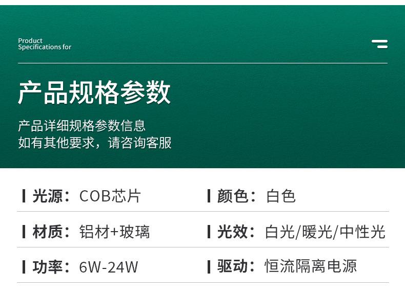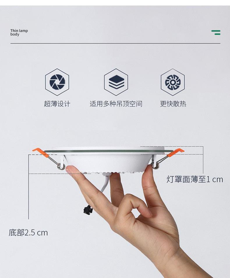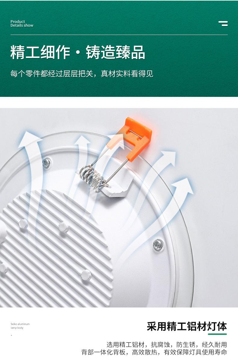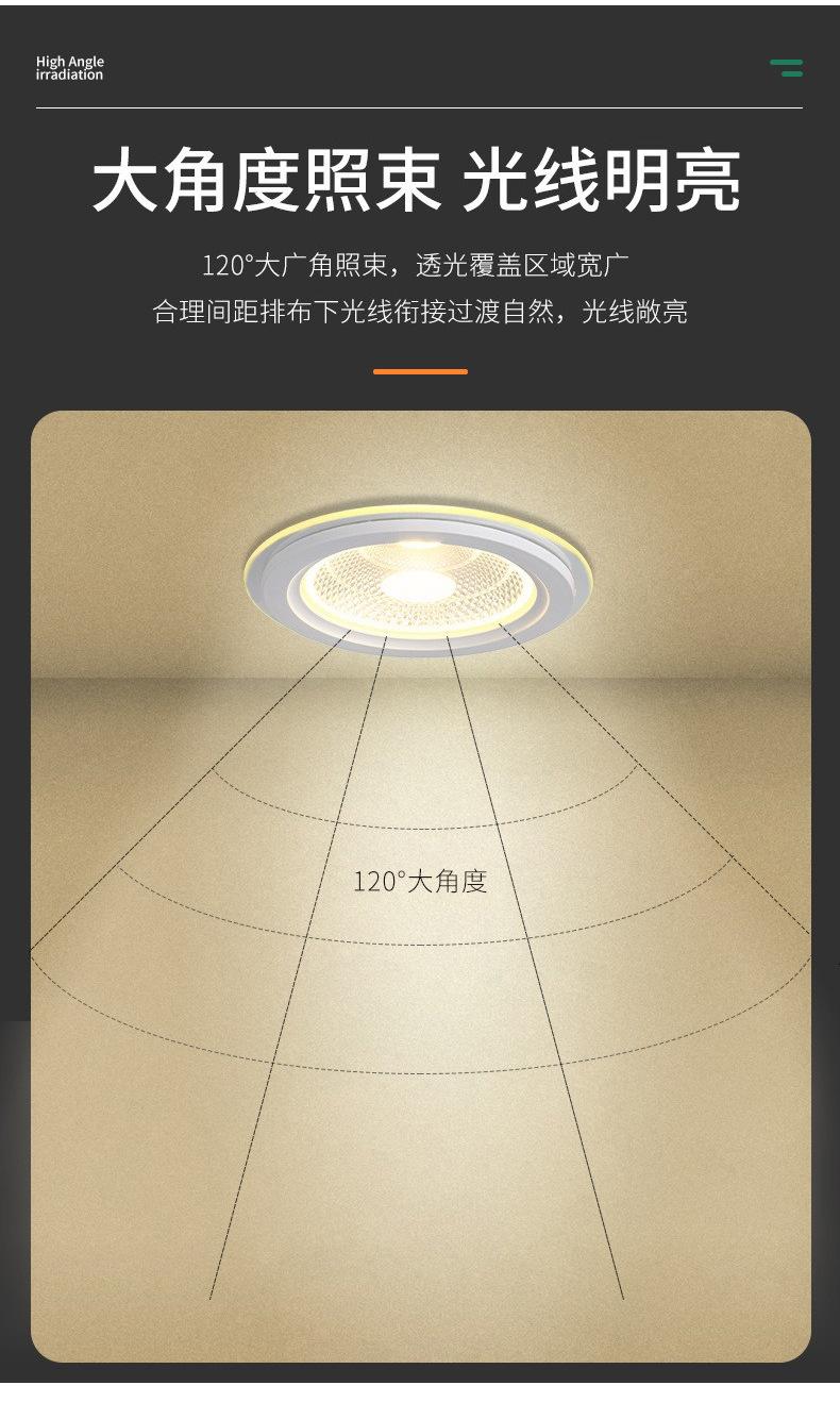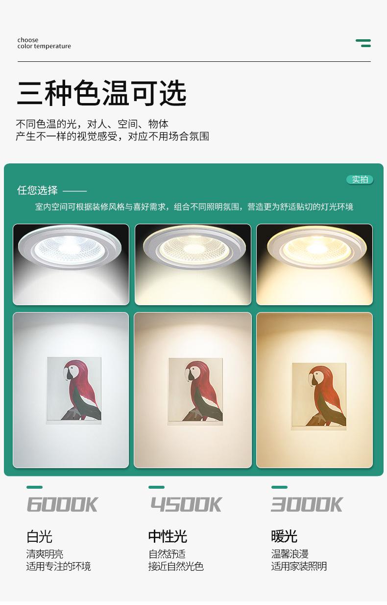 Lámpara de panel de vidrio LED, foco COB, lámpara de techo empotrada, downlight comercial, lámpara de techo con cambio de luz de tres colores, venta al por mayor