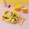 Set de Plato para Cena Infantil de Bambú Spot Bandeja para Comida de Bebé Plato Lindo de Panda con Cuchara Set de Ventosa de Silicona