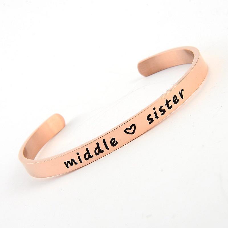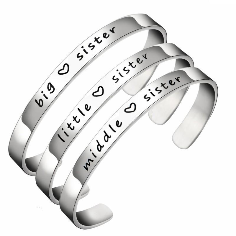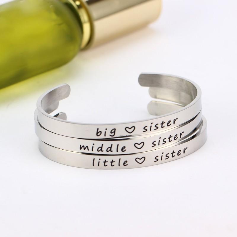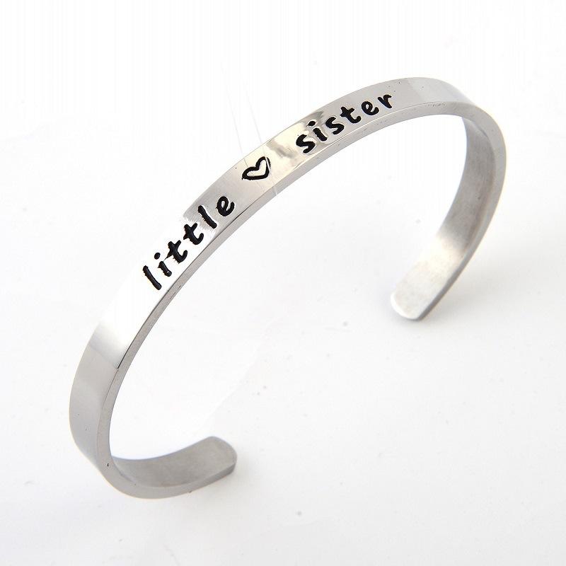Nombre del producto: Pulsera de acero de titanio grabada de hermana y hermana