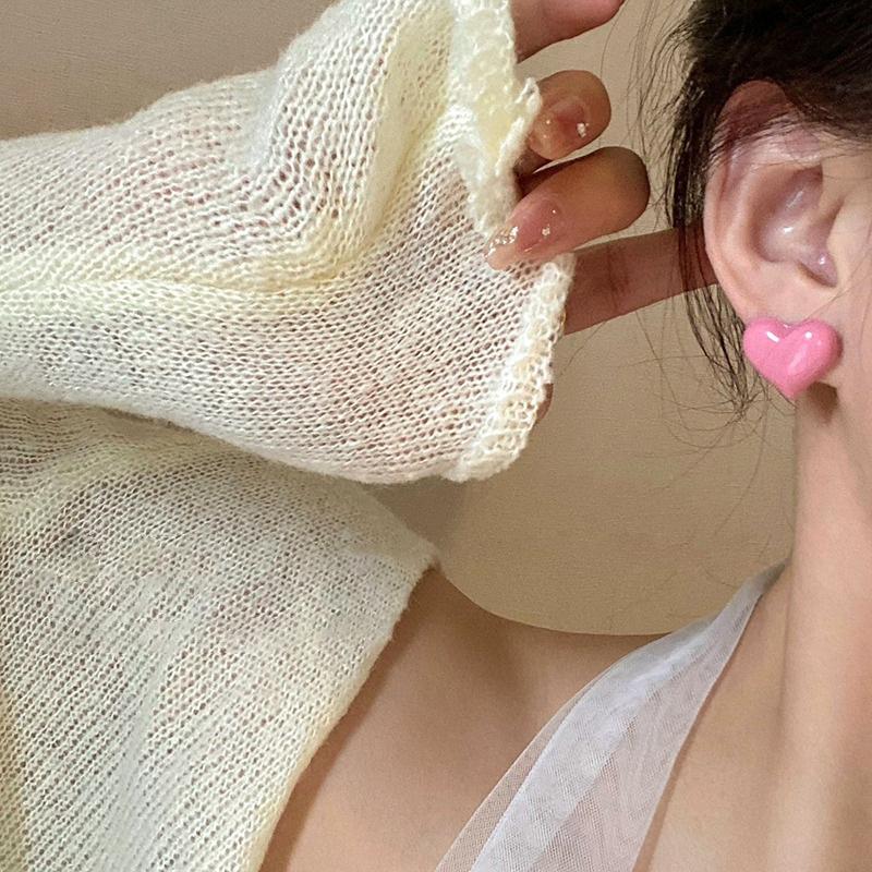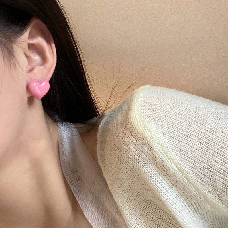 Aretes de Corazón Rosa Aguja S para Mujer Verano Dulce y Lindo Aretes Populares para Niña 2023 Nuevos Aretes de Moda