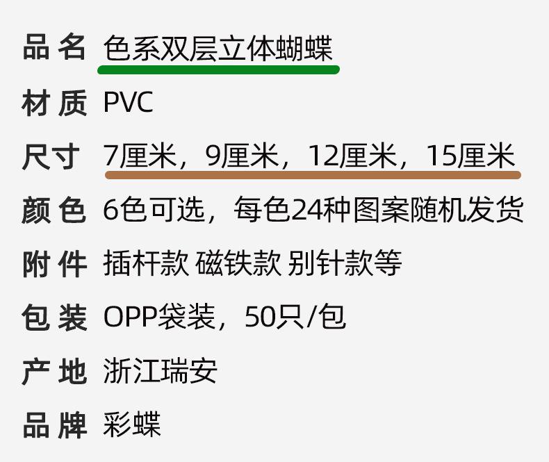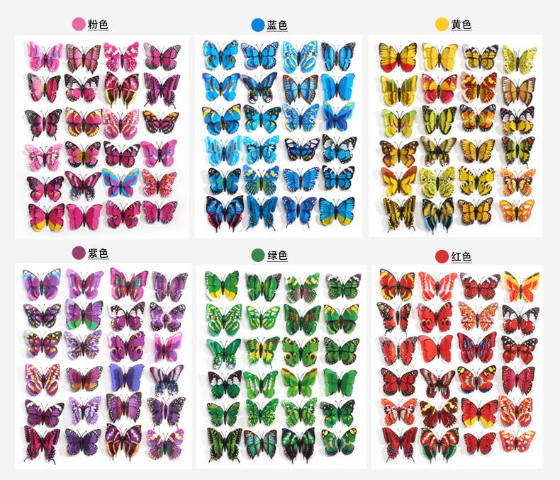 Mariposa de simulación de doble capa, 6 colores, plástico PVC, decoración de jardín