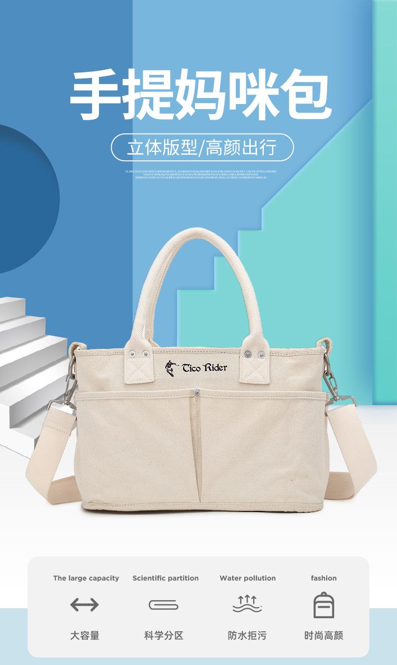 Nueva bolsa de momia de gran capacidad de almacenamiento, multifuncional, para madre y bebé, bandolera de hombro, bolsa de cosméticos de lona portátil, venta al por mayor