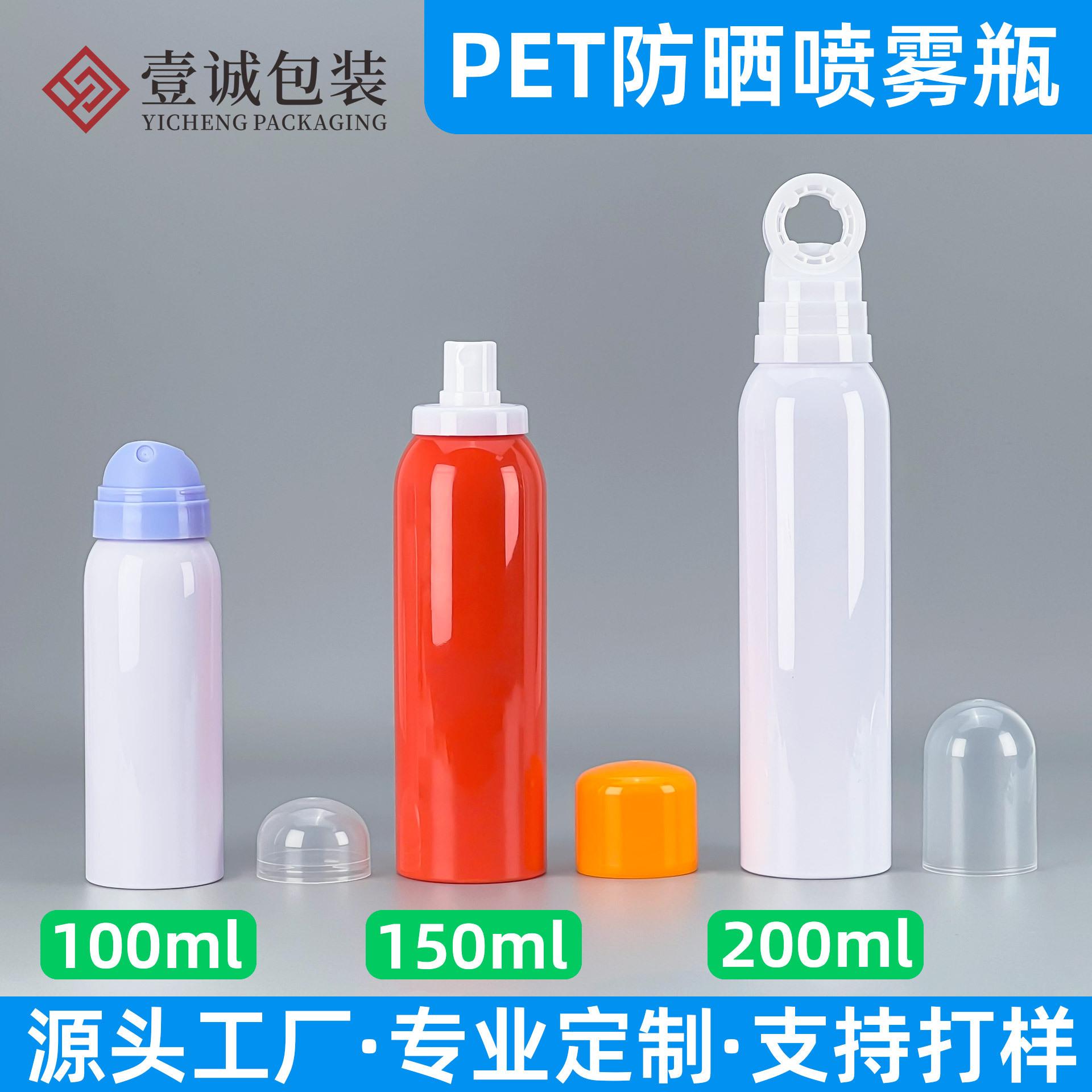 Botella de spray de protector solar con boquilla pequeña de 150 ml, botella de spray de protector solar con boquilla fina de 100 ml y 200 ml con aro de presión.
