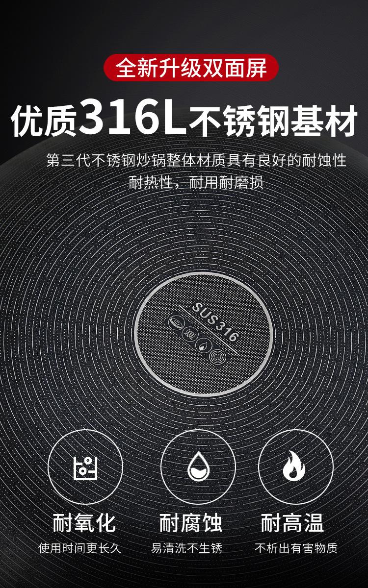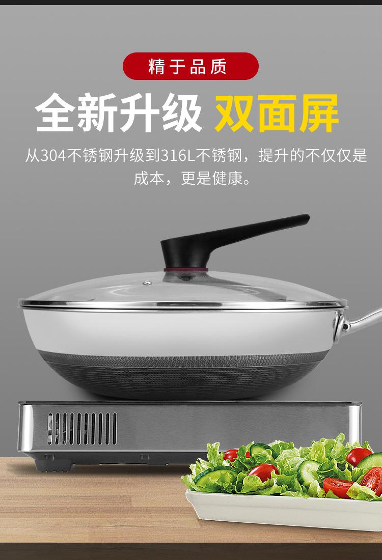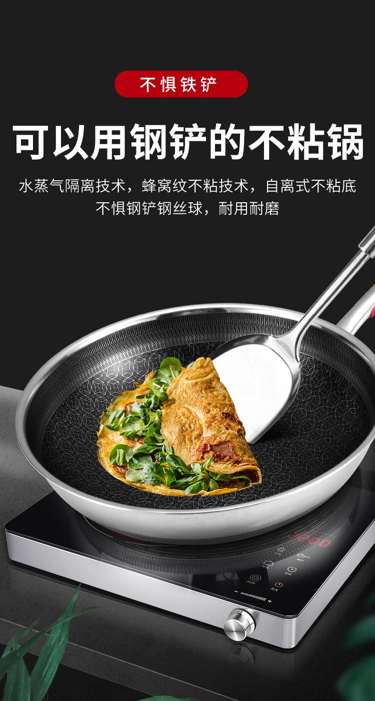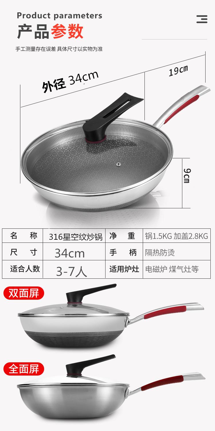 Sartén antiadherente de acero inoxidable 316 con diseño de estrella y doble cara, ideal para cocinas de inducción y gas.