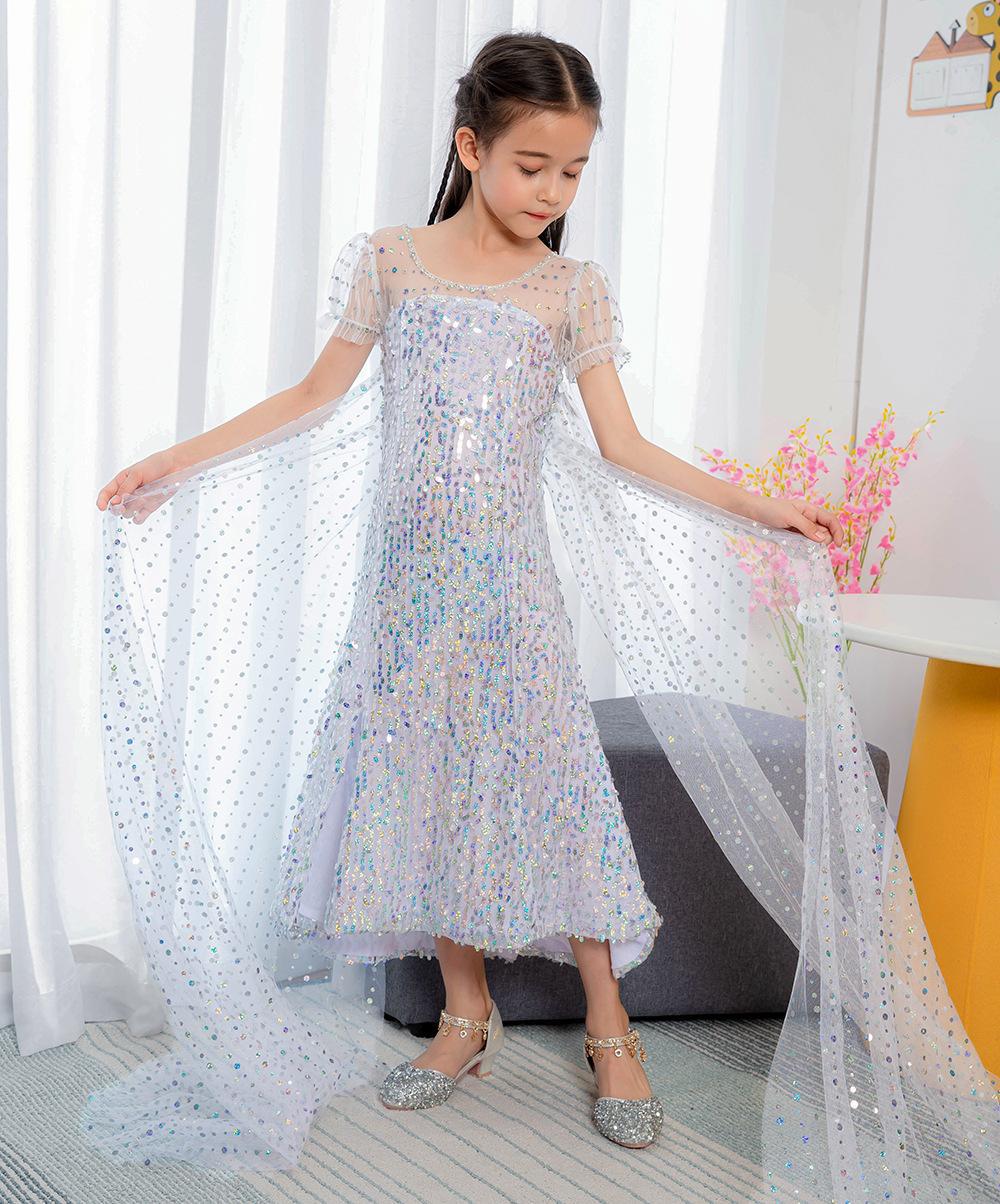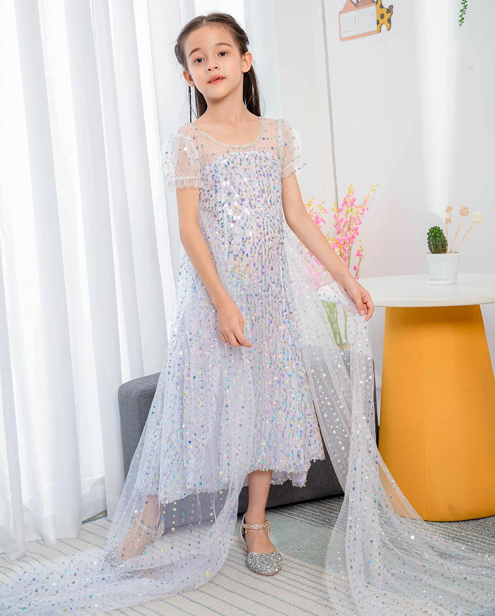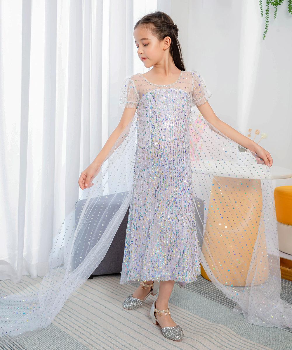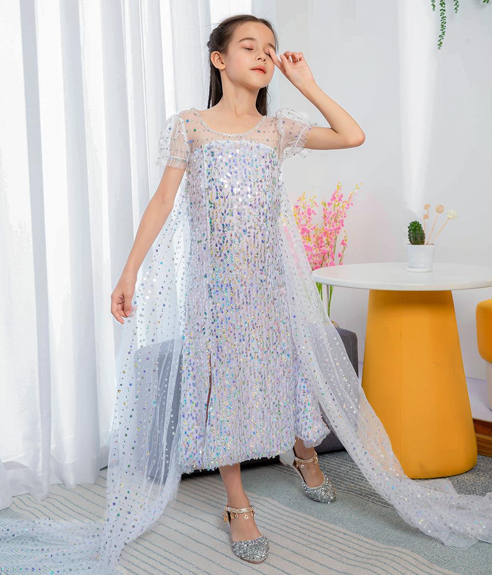 Compra Vestido de princesa Aisha de Frozen 2, Elsa, lentejuelas, malla abullonada, capa desmontable al por mayor en Joom.pro