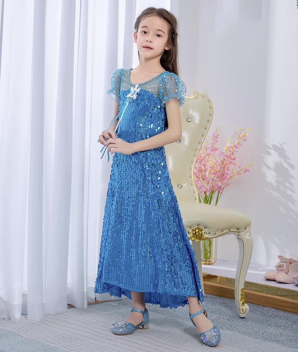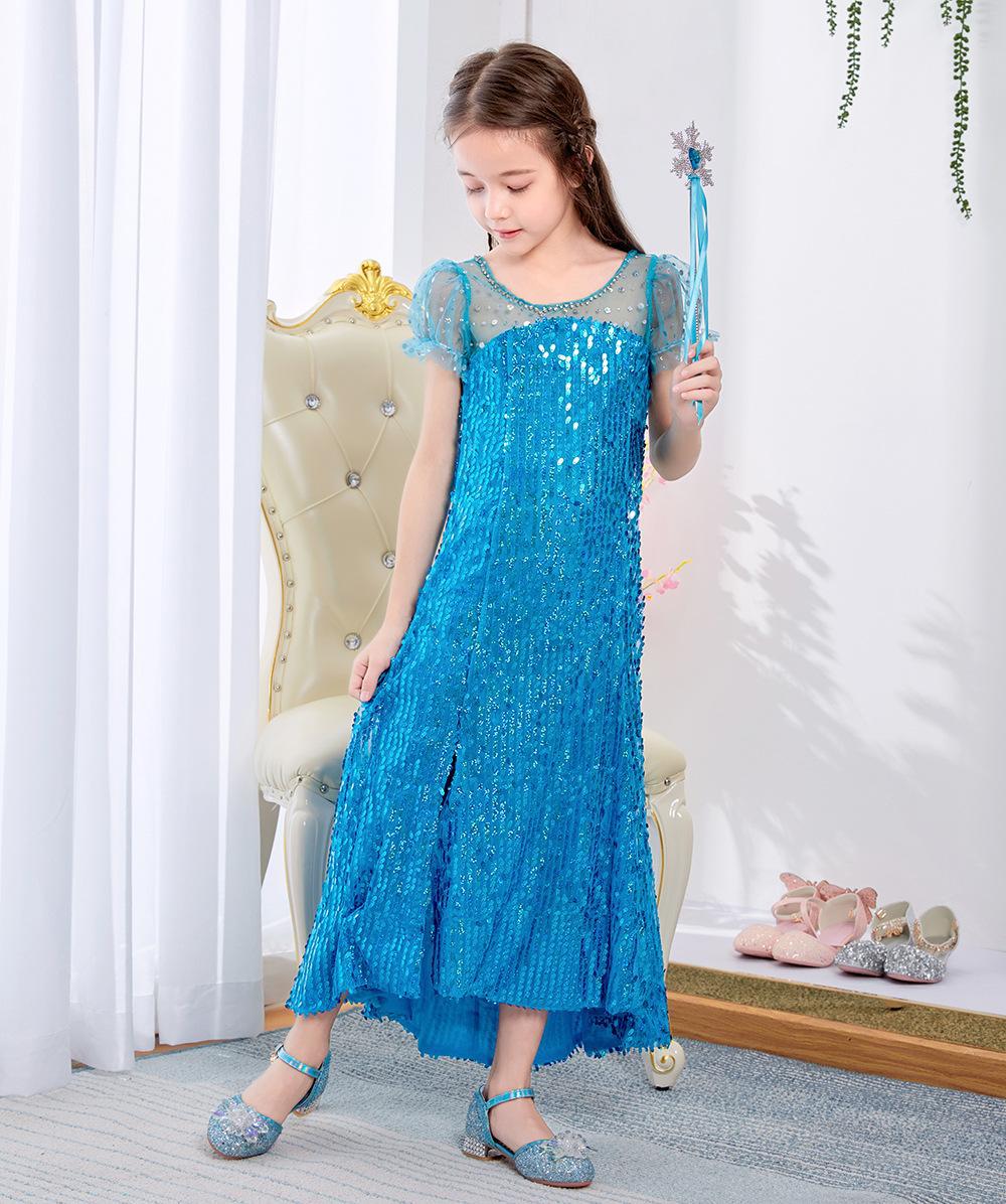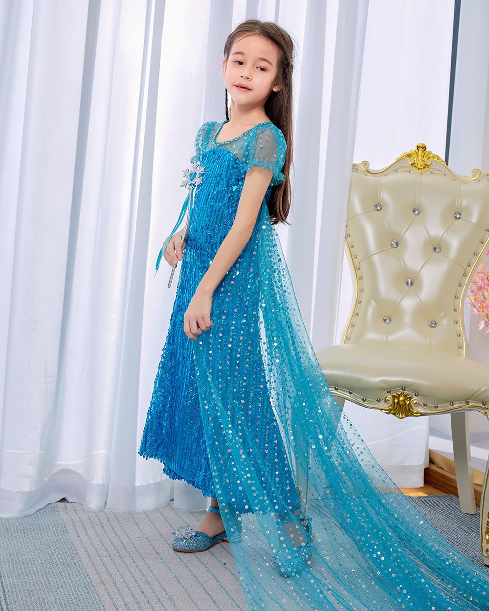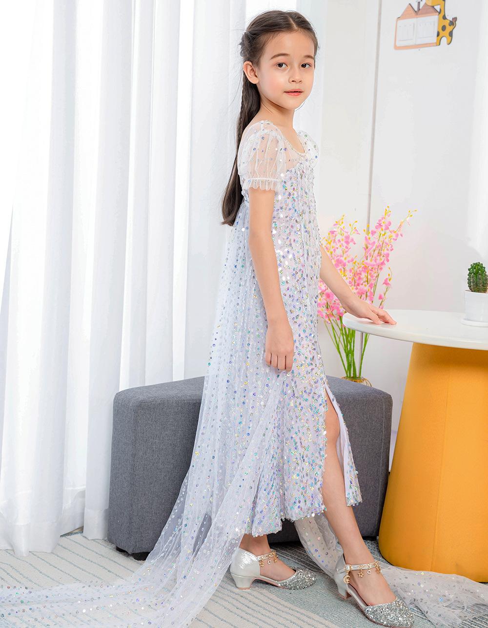 Compra Vestido de princesa Aisha de Frozen 2, Elsa, lentejuelas, malla abullonada, capa desmontable al por mayor en Joom.pro