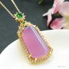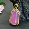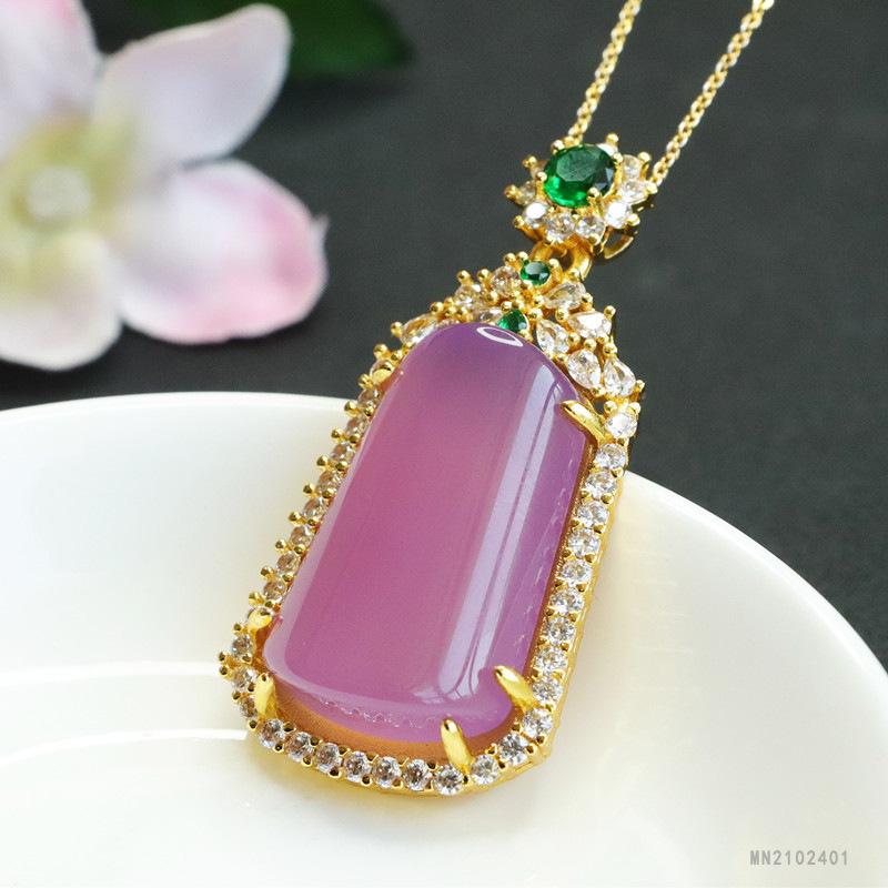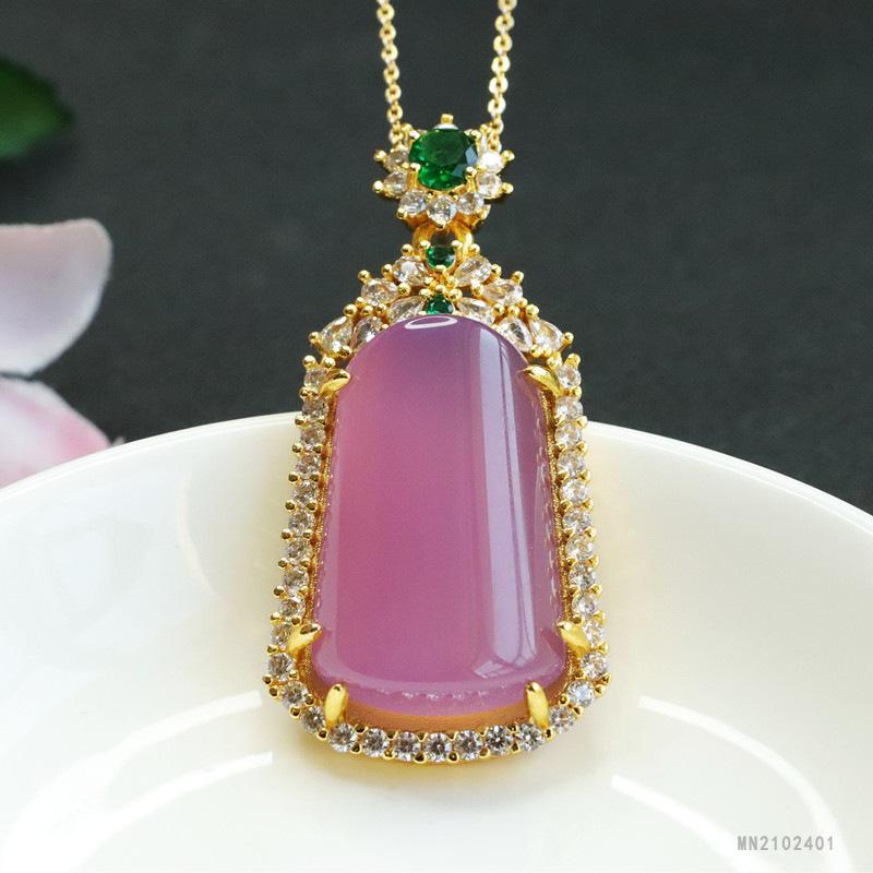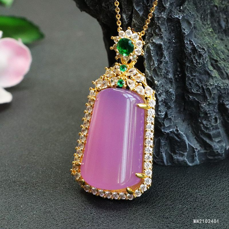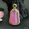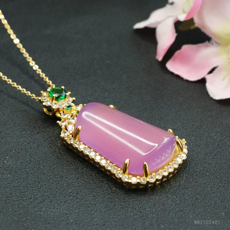 Powder chalcedony trapezoidal nothing card pendant oversized green treasure (MN2102401)28-17mm (excluding chain)