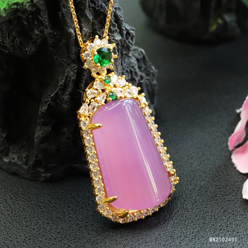 Powder chalcedony trapezoidal nothing card pendant oversized green treasure (MN2102401)28-17mm (including alloy chain)