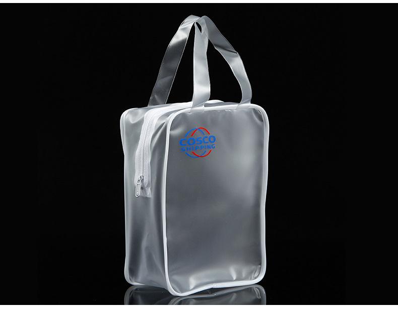 Bolsa de plástico transparente de PVC esmerilado, venta al por mayor, con logotipo personalizado, para compras de ropa, bolsa de regalo grande con cremallera