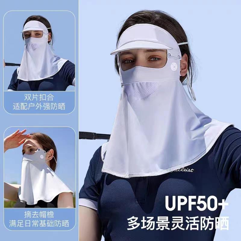 Mascarilla de protección solar para mujer, de seda helada, antiultravioleta, para verano, para conducir, protección para el cuello, artefacto de protección solar integrado.