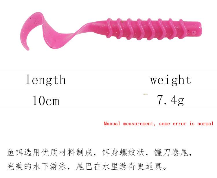 Luya Bait Nuevo cebo blando explosivo para pesca Grupo de pesca Dezhou Gusano de cola rizada Siniperca chuatsi Lubina de rayas blancas Pesca en el mar Agua dulce Cola simple