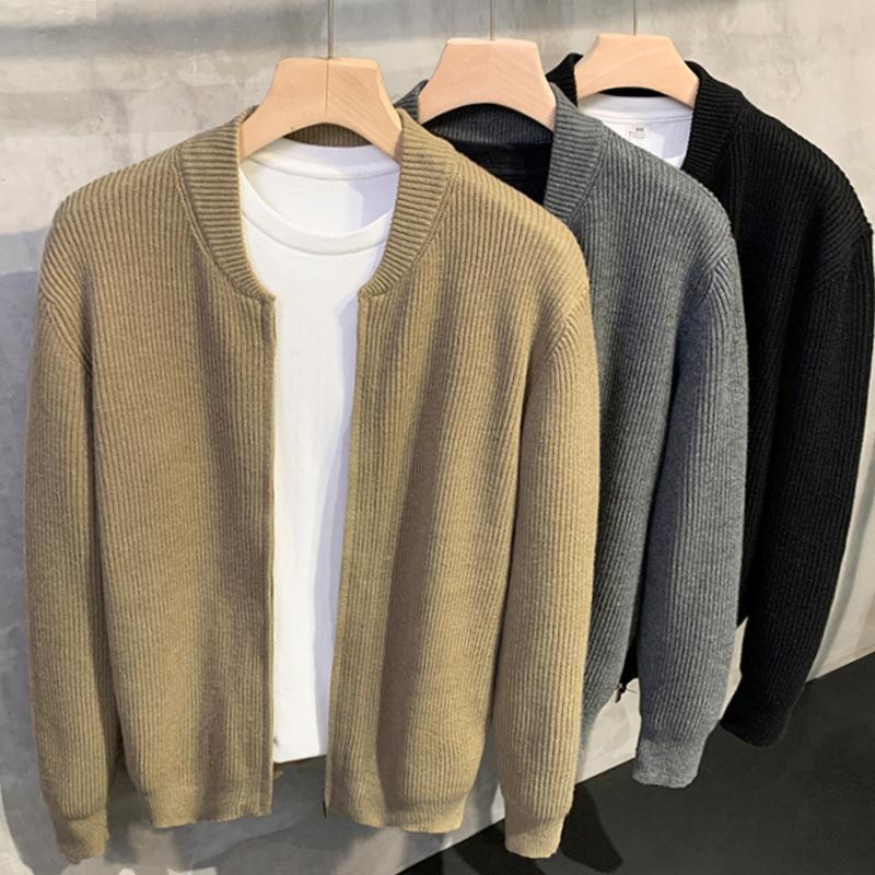 Compra Suéter tipo cárdigan con diseño de doble cremallera para hombre, primavera y otoño 2023, moda coreana, suéter ajustado para hombre al por mayor en Joom.pro
