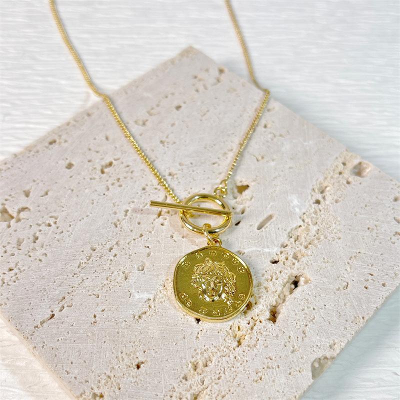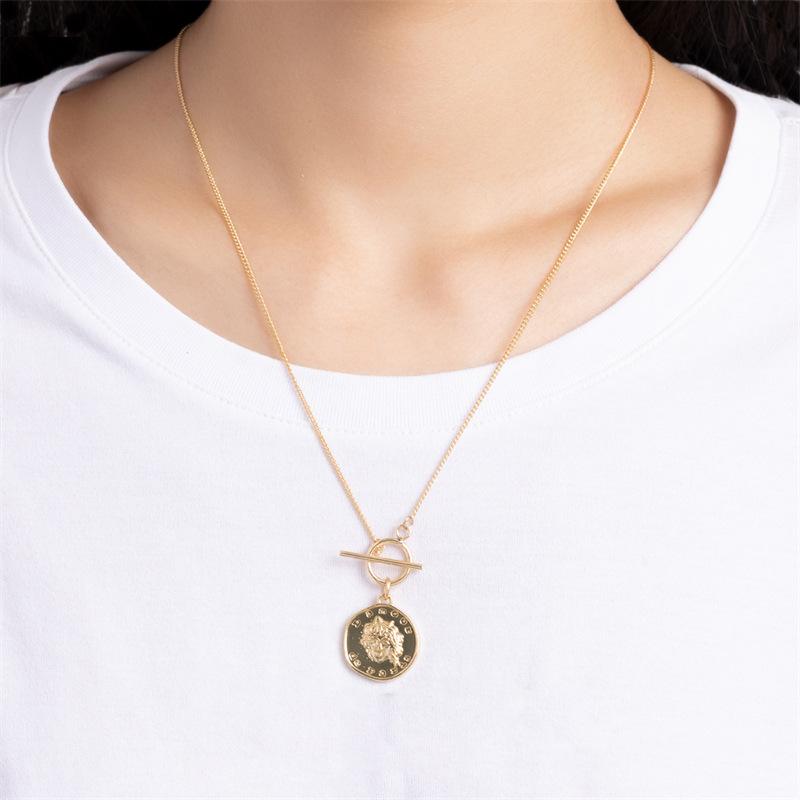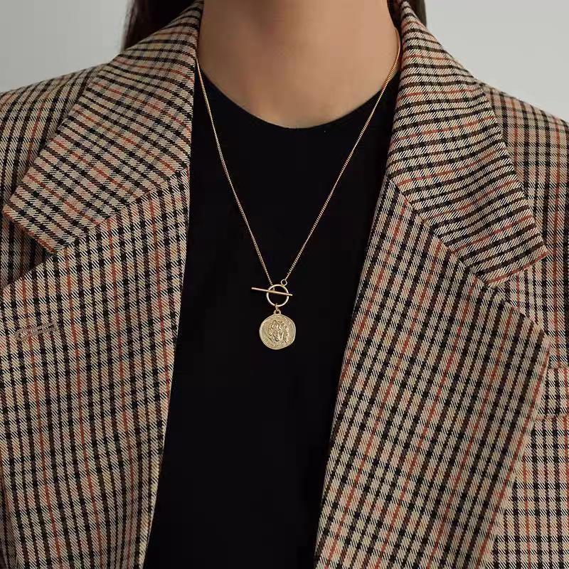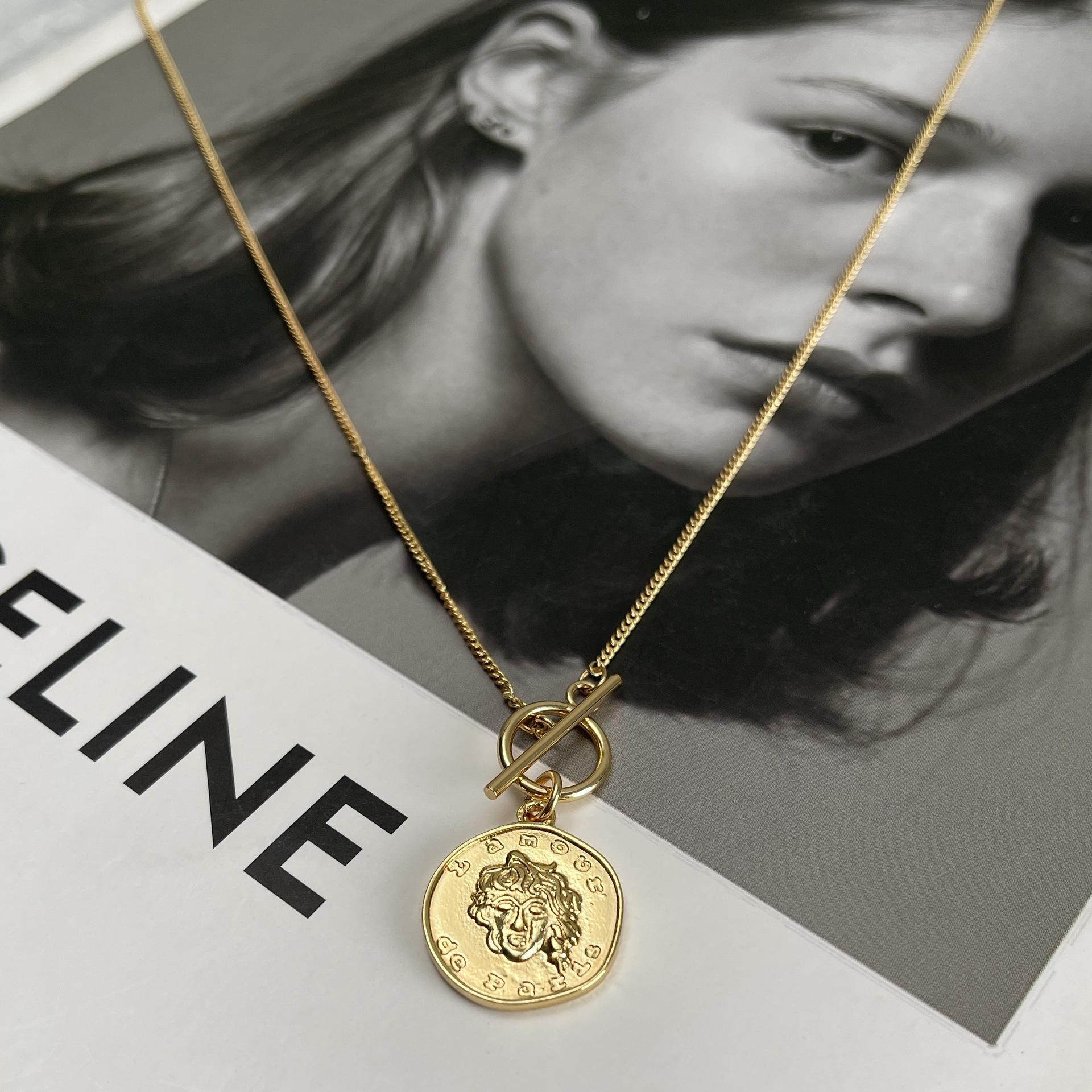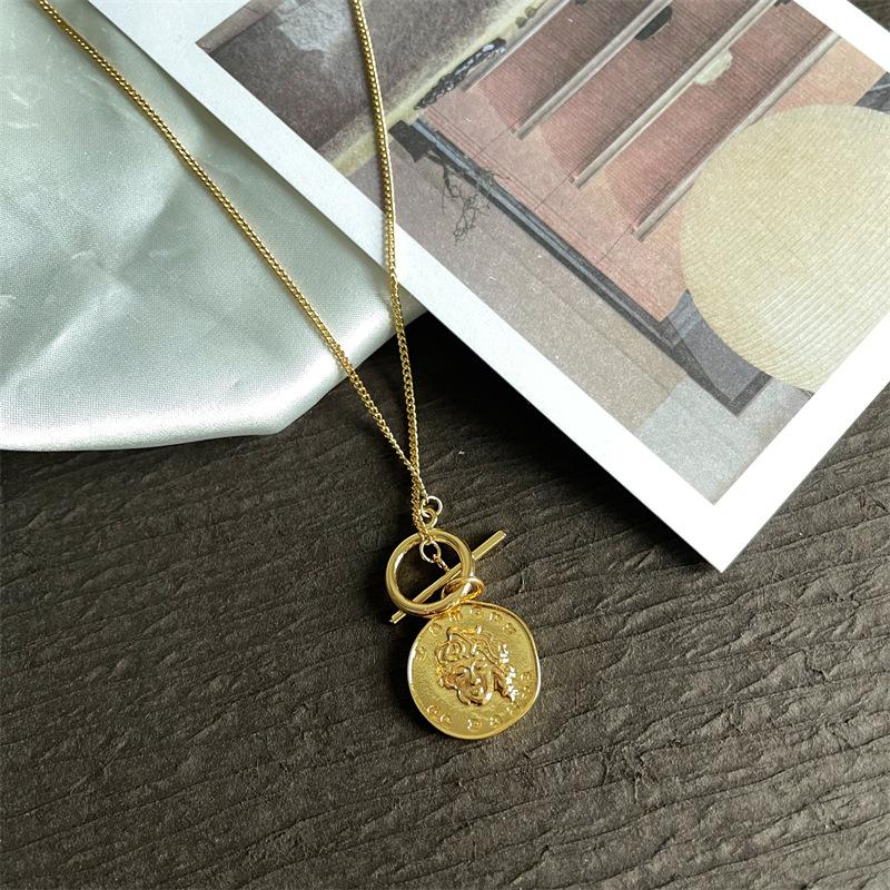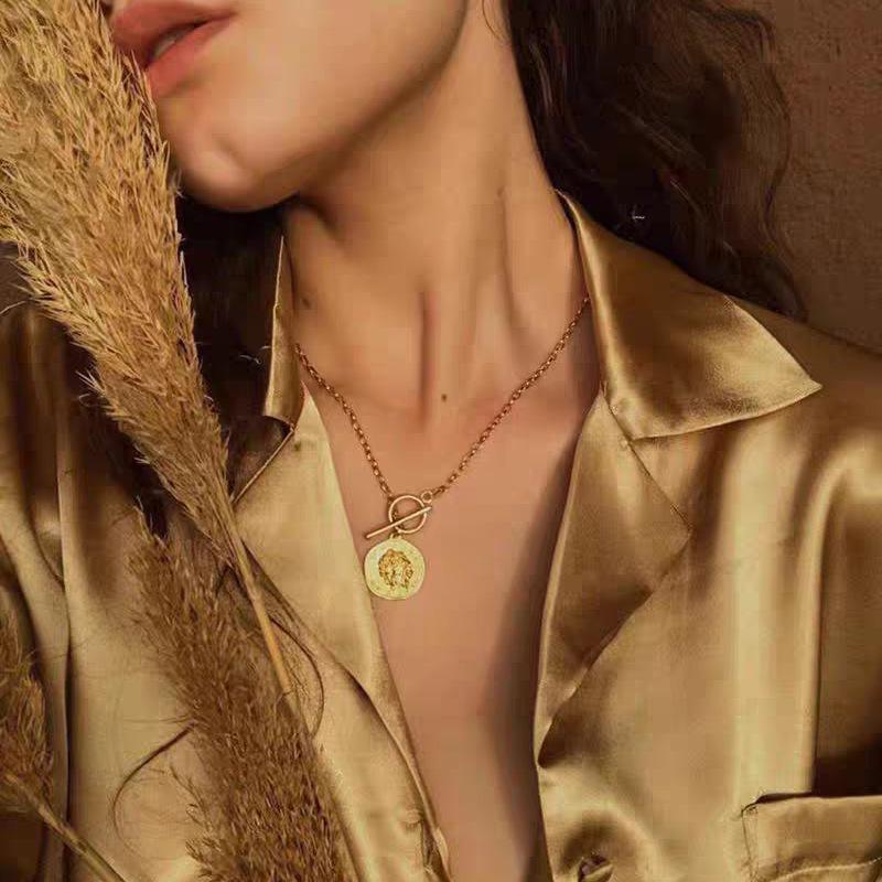 Collar Redondo de Marca con Figura Dorada Europea y Americana para Mujer, Retro, Lujo Ligero, Alta Gama, Estilo Simple y Frío, Accesorios Elegantes