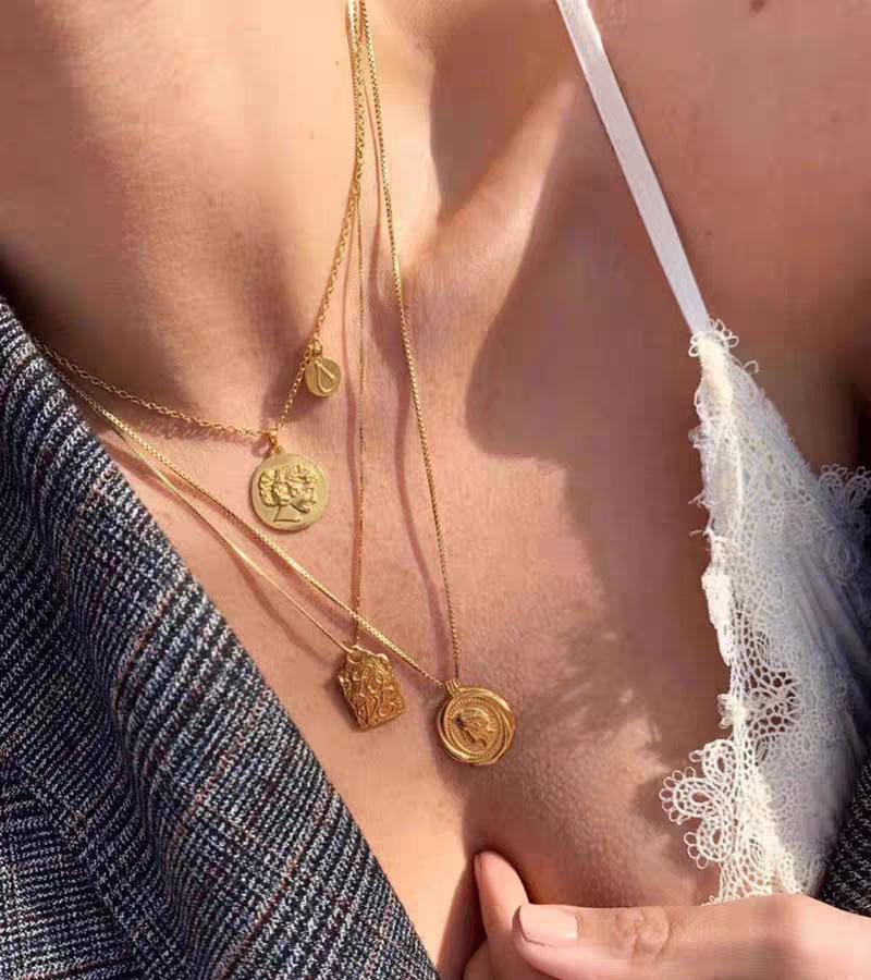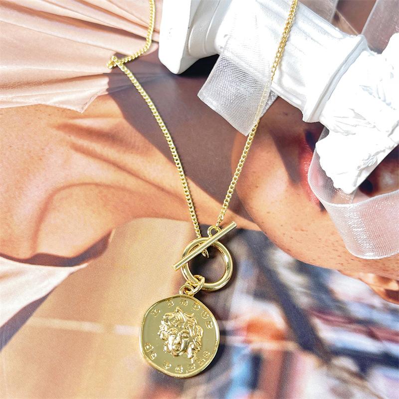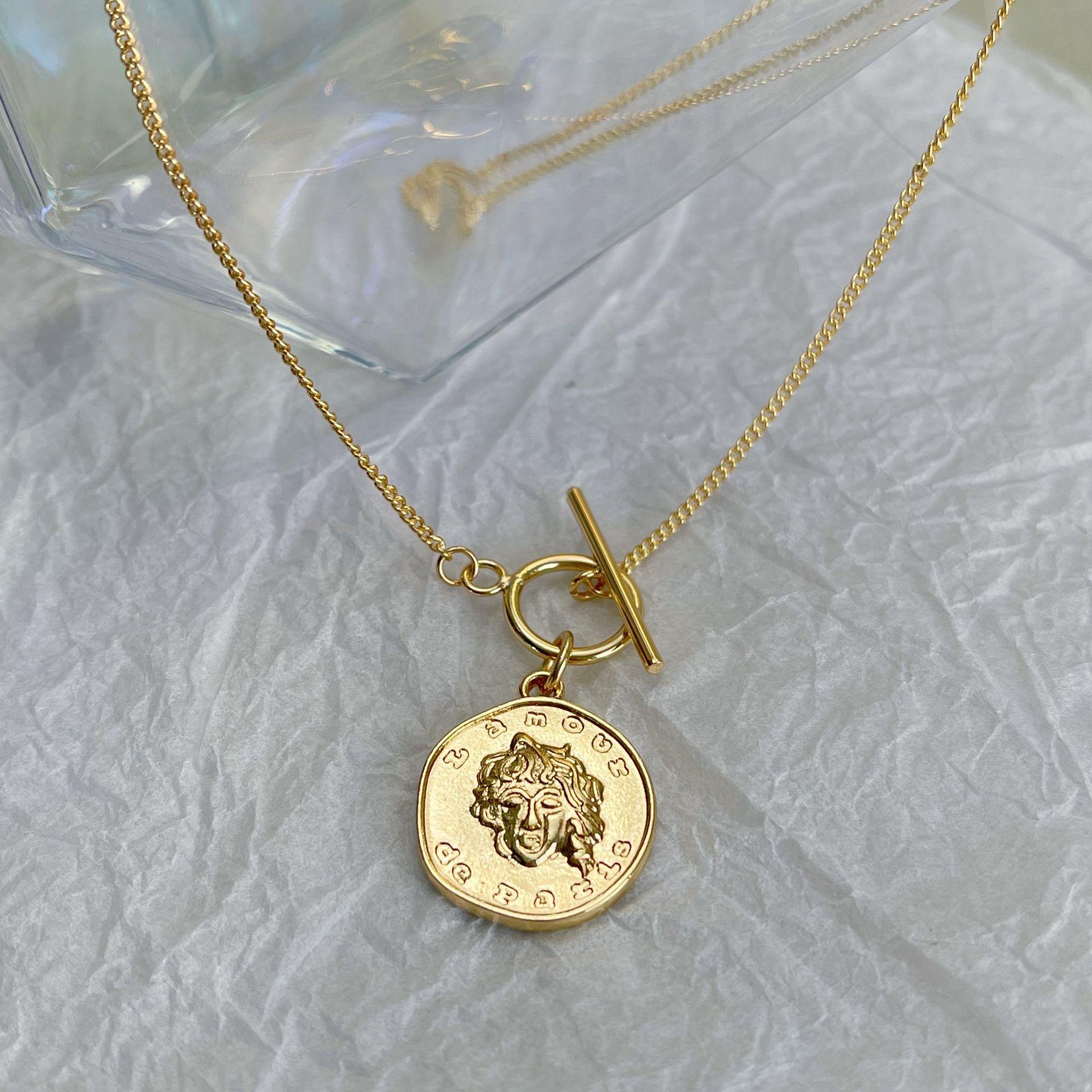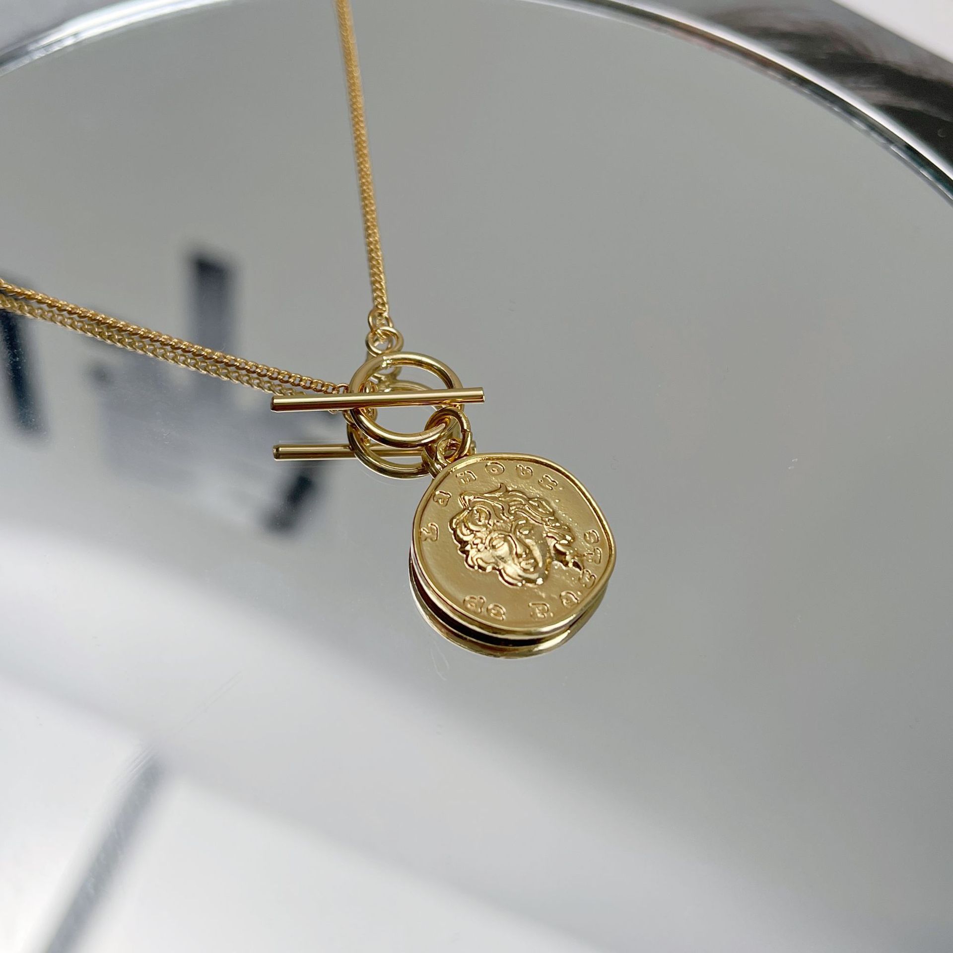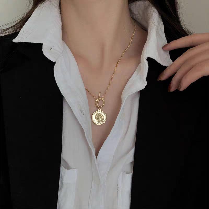 Collar Redondo de Marca con Figura Dorada Europea y Americana para Mujer, Retro, Lujo Ligero, Alta Gama, Estilo Simple y Frío, Accesorios Elegantes