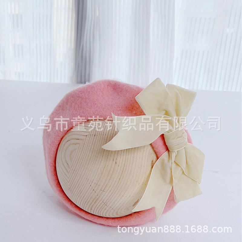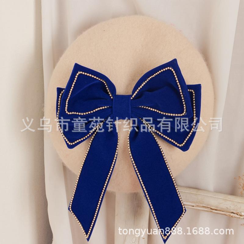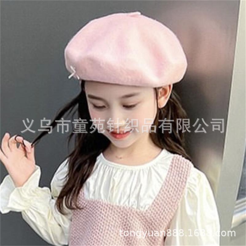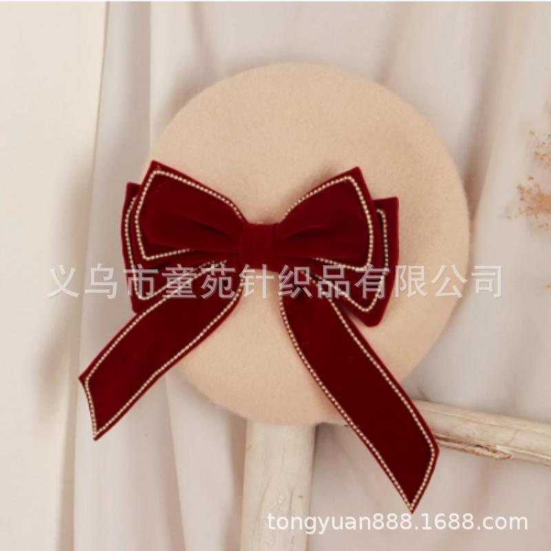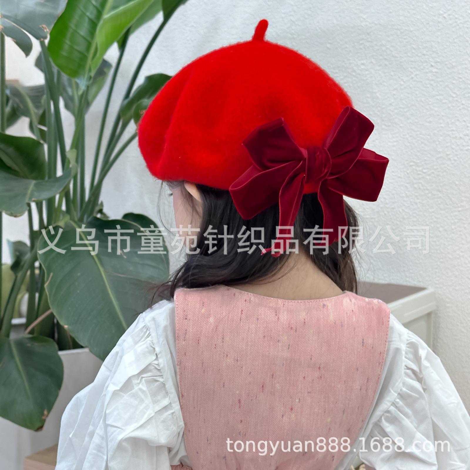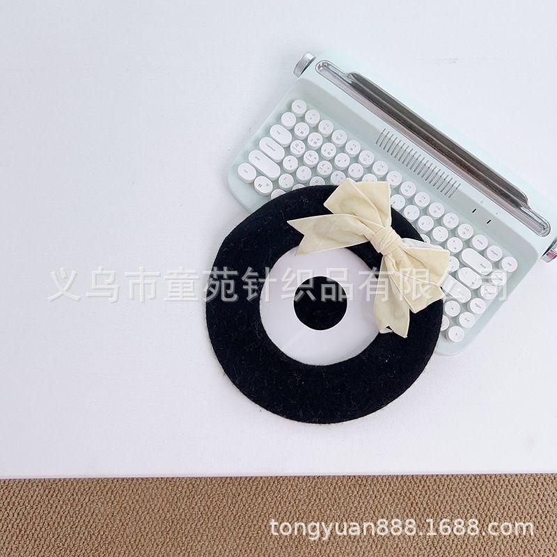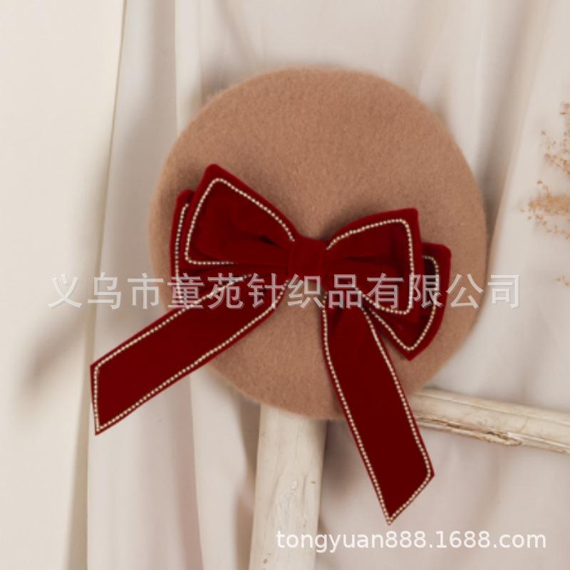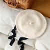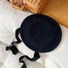 Gorro de lana nuevo de primavera y verano 2025 para mujer, estilo dulce, con lazo de taladro, boina infantil, estilo pintor de moda.