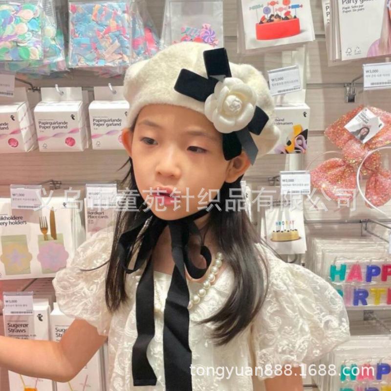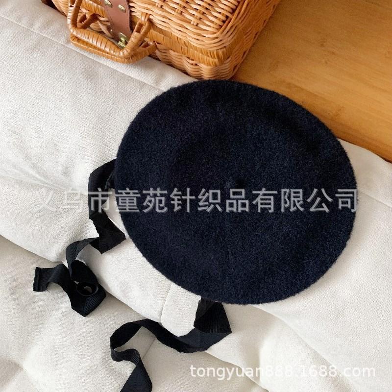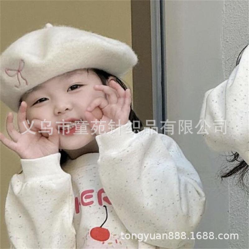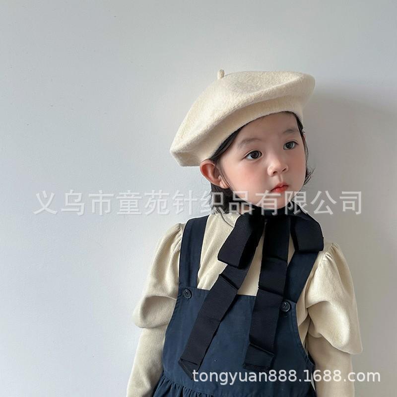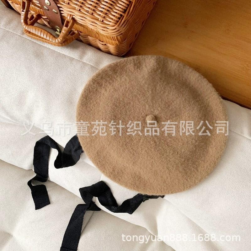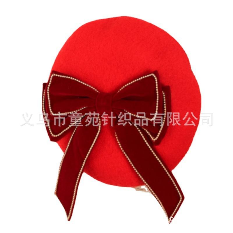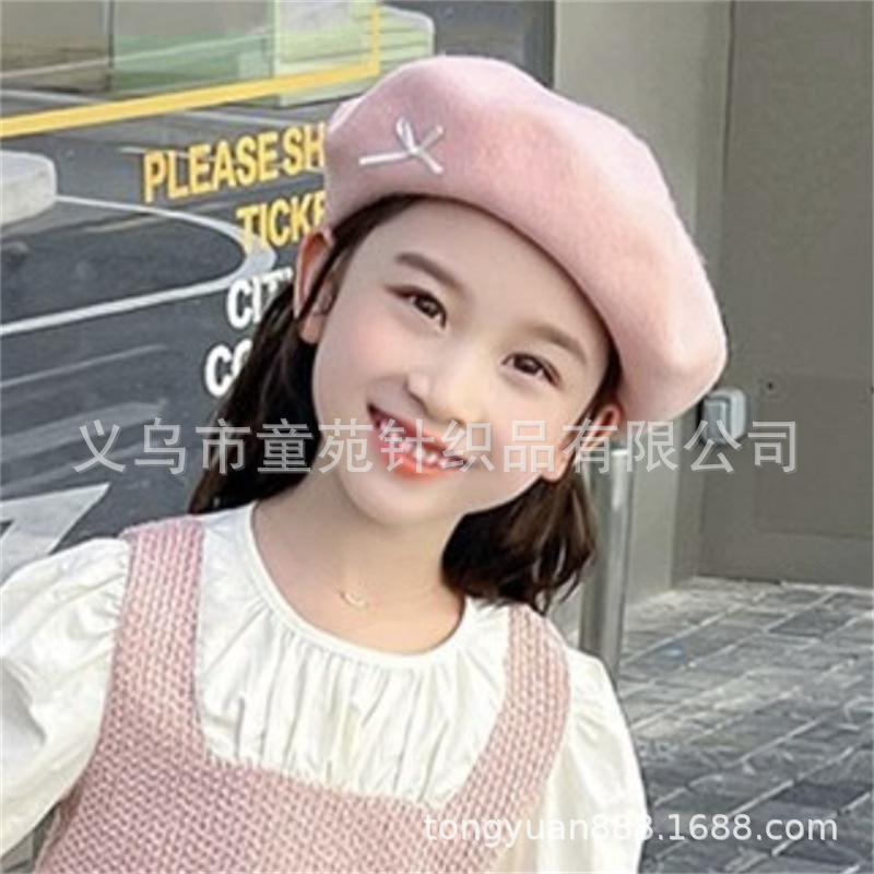 Gorro de lana nuevo de primavera y verano 2025 para mujer, estilo dulce, con lazo de taladro, boina infantil, estilo pintor de moda.