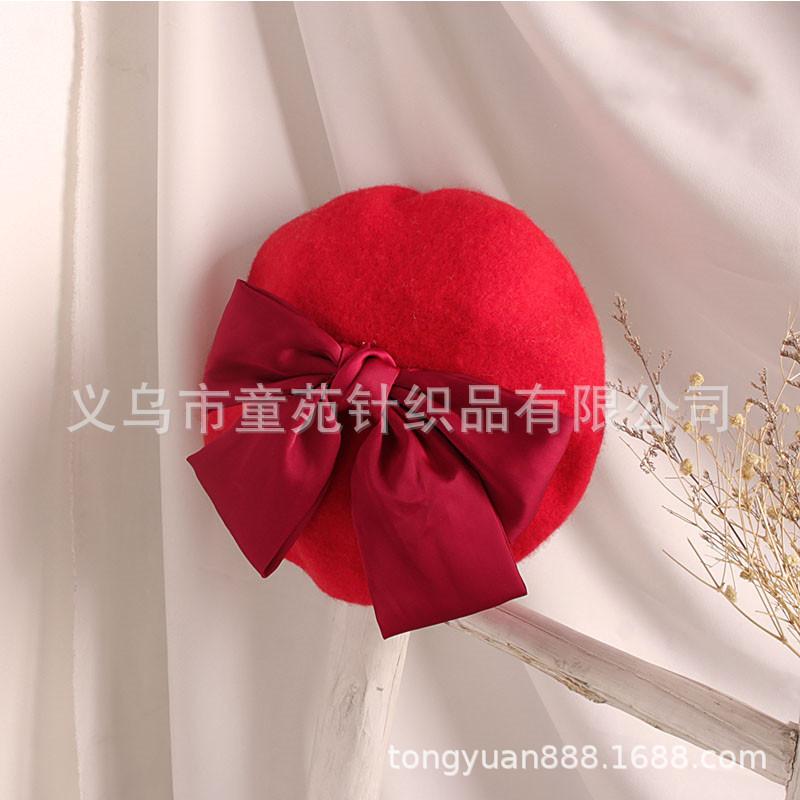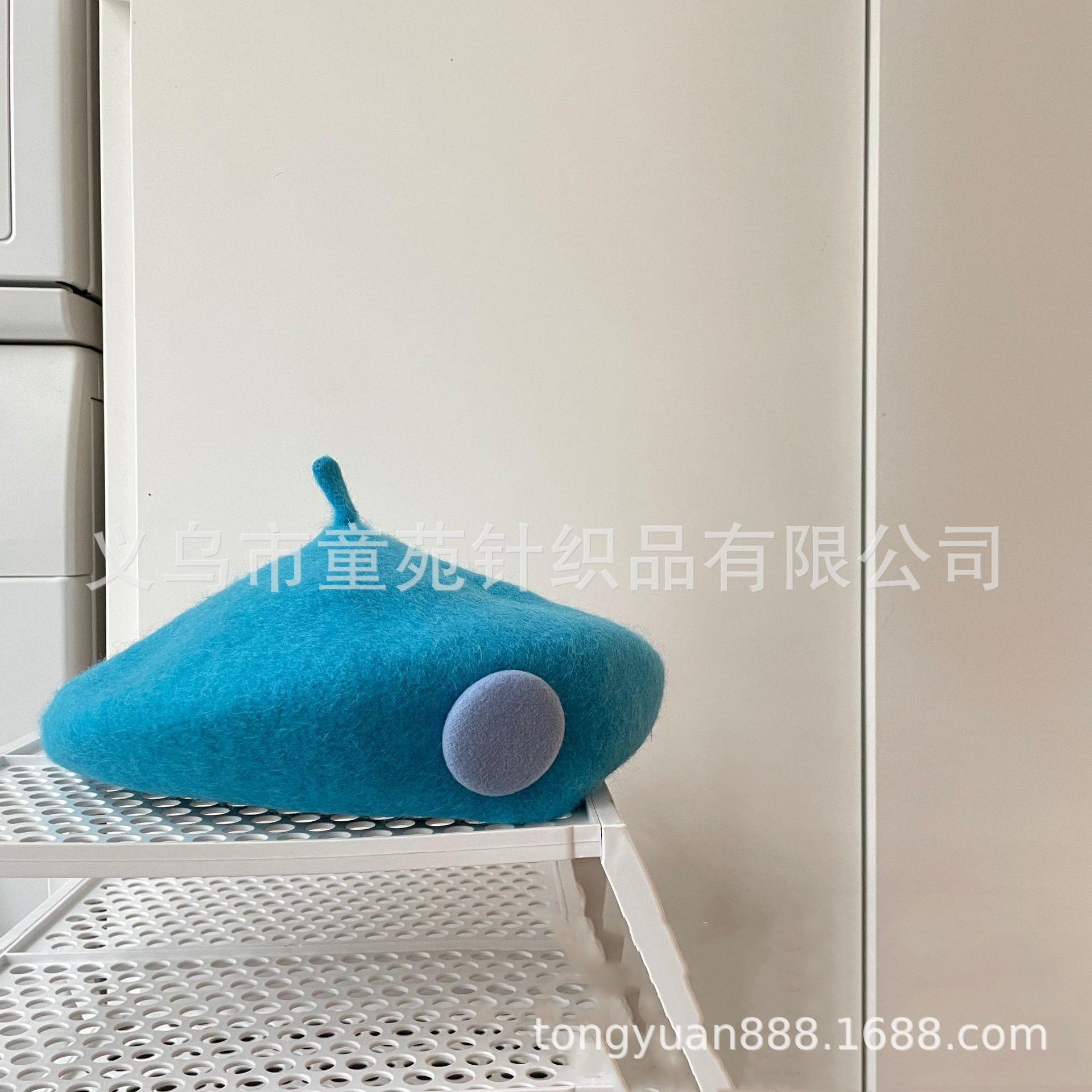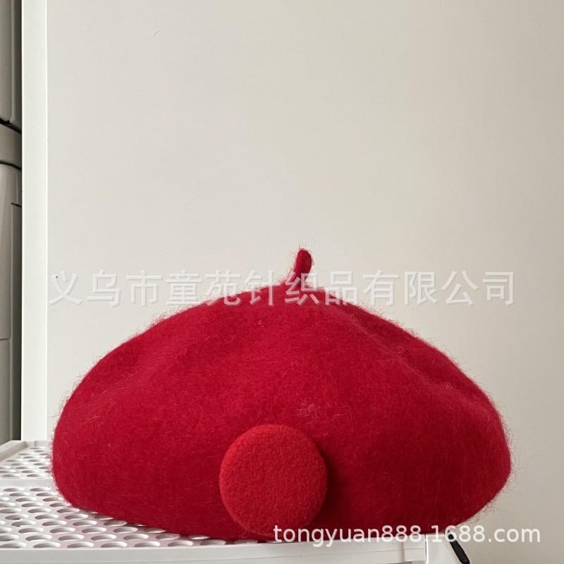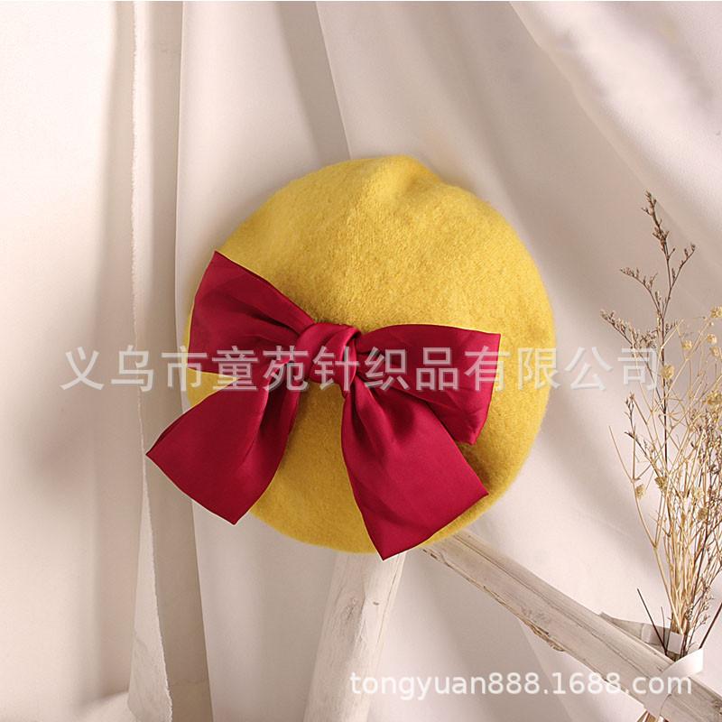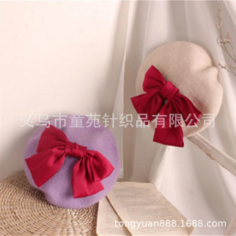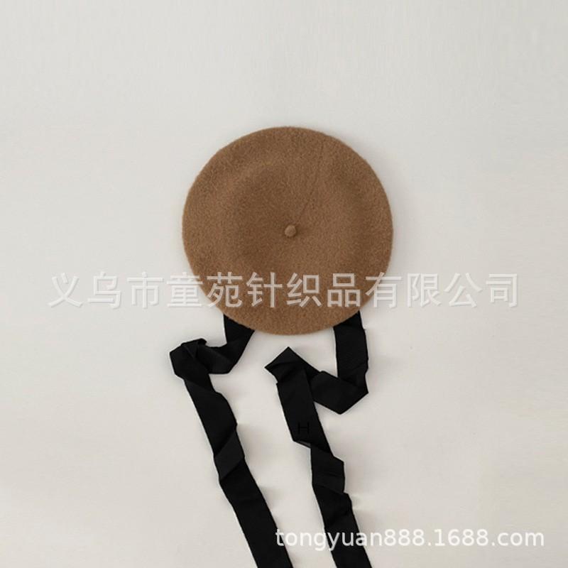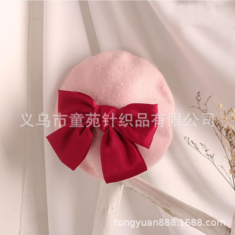 Gorro de lana nuevo de primavera y verano 2025 para mujer, estilo dulce, con lazo de taladro, boina infantil, estilo pintor de moda.