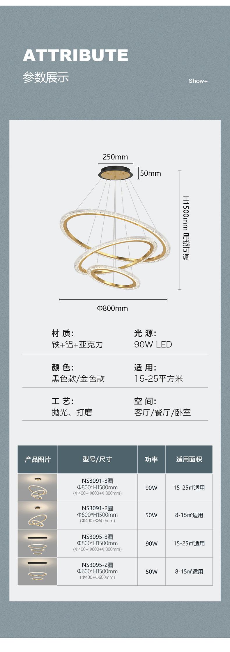Round three-circle black 40+60 + 80cm electrodeless dimming