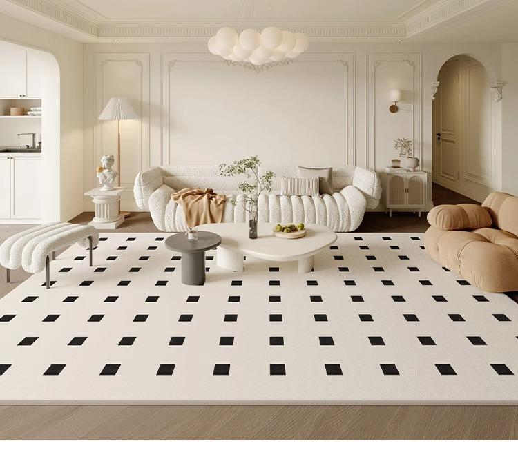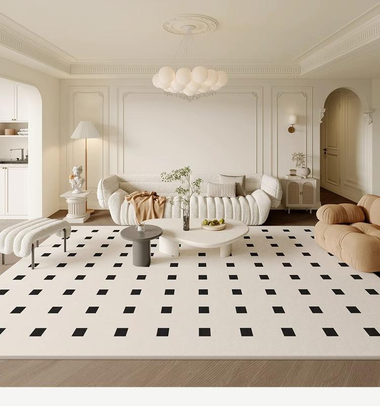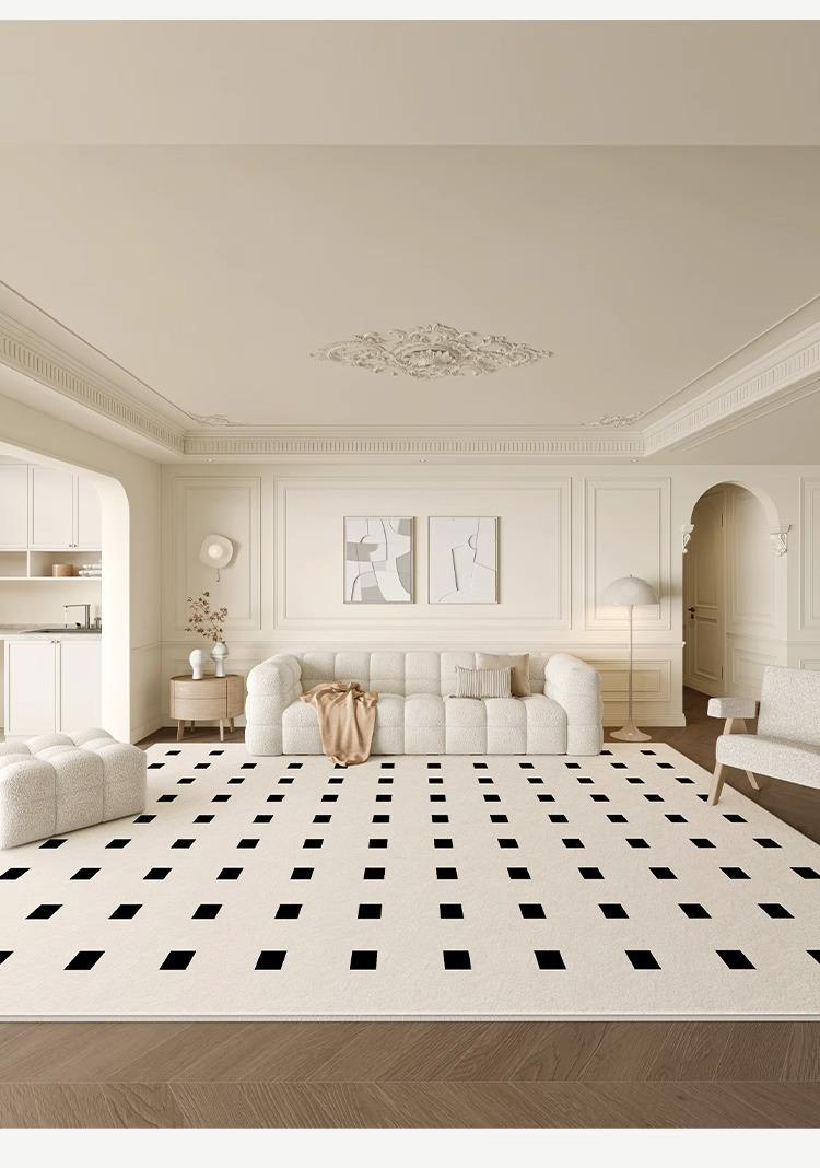 Alfombra estilo francés ligera de lujo para sala de estar, moderna, sencilla, para sofá, dormitorio, cachemira avanzada, impermeable y antiincrustante, alfombra completa