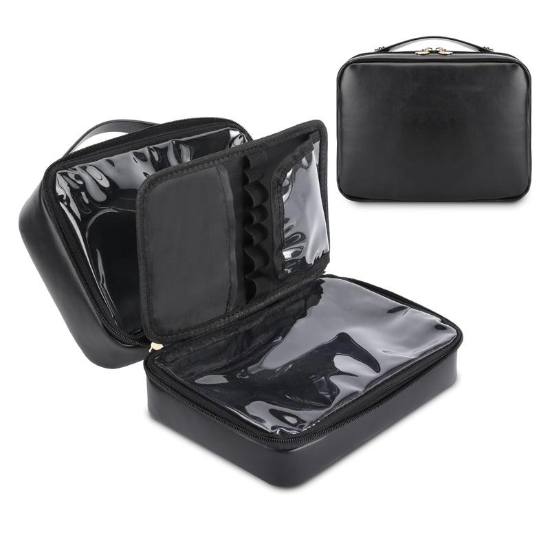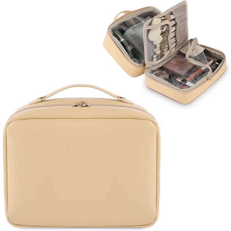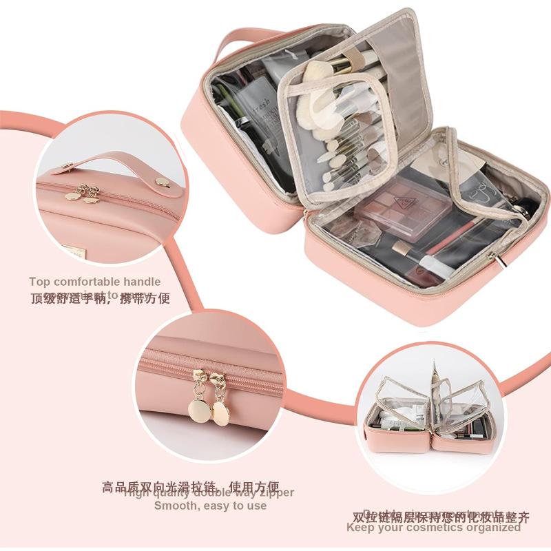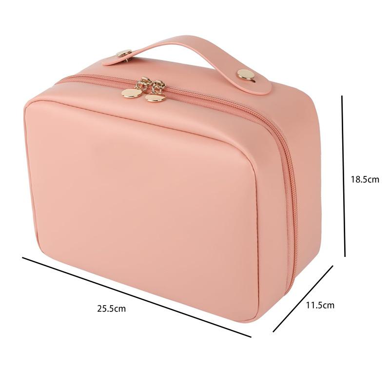 Compra Bolsa de almacenamiento de cosméticos portátil nueva transfronteriza de cuero impermeable para viaje, bolsa de aseo de viaje, bolsa de cosméticos de cuero PU al por mayor en Joom.pro