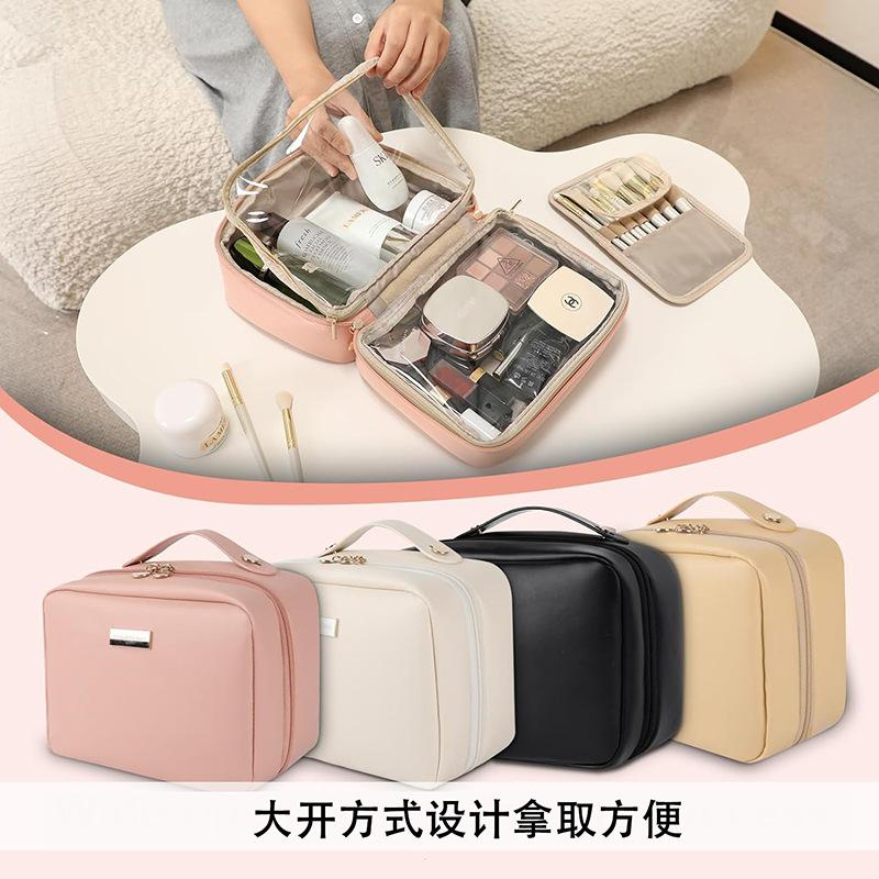 Bolsa de almacenamiento de cosméticos portátil nueva transfronteriza de cuero impermeable para viaje, bolsa de aseo de viaje, bolsa de cosméticos de cuero PU