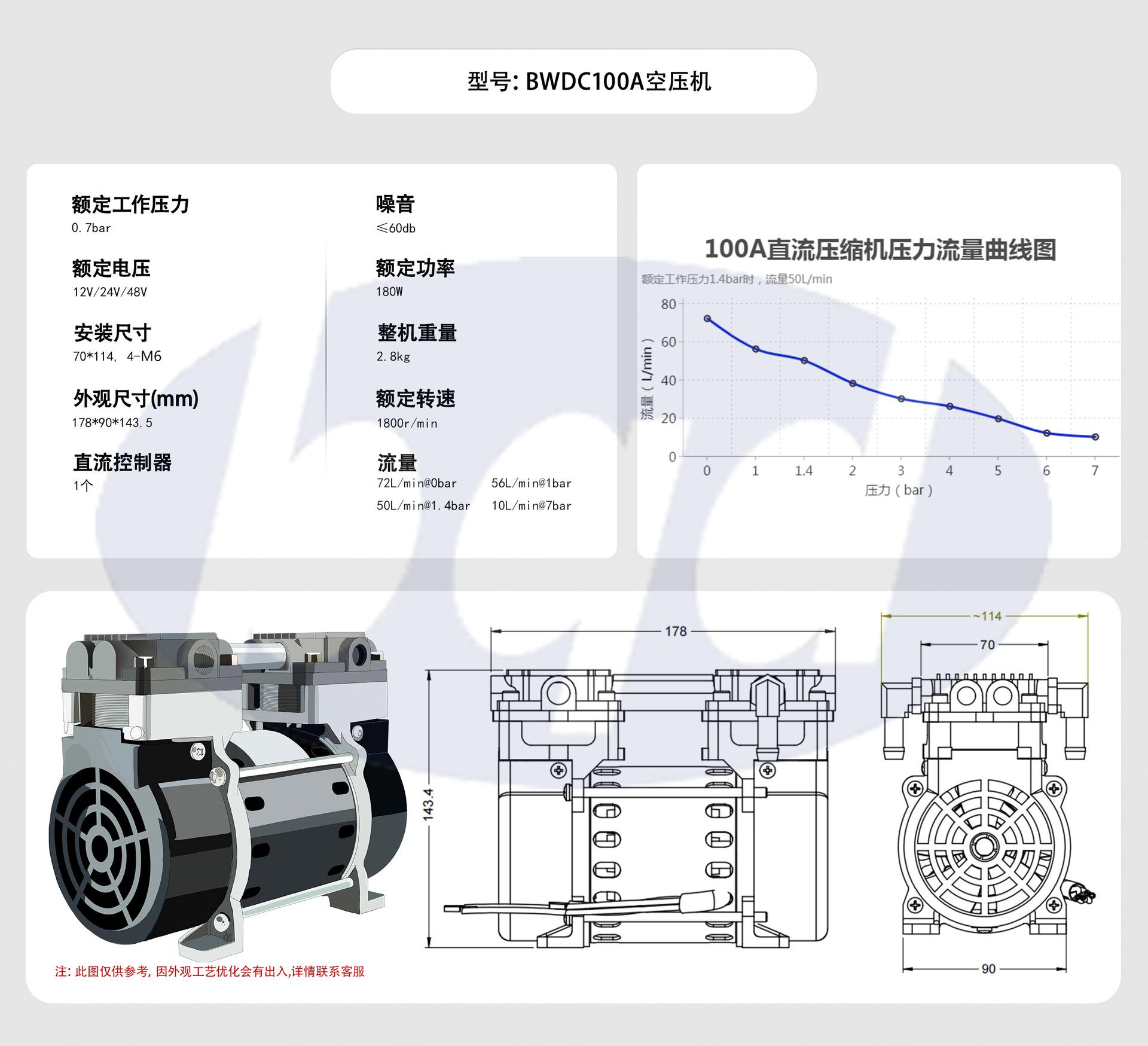 Baqian Compresor de Aire Pequeño de 12V Sin Aceite y Sin Escobillas de CC Cabezal de Compresor de Aire para Coche