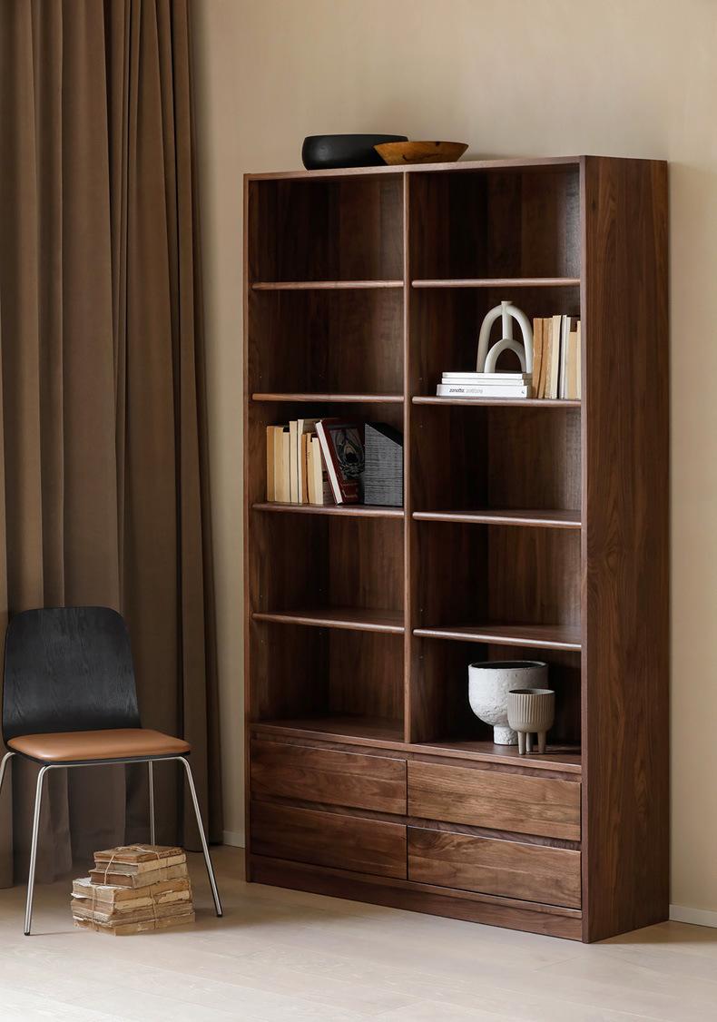Librero de madera maciza de nogal negro americano, estantería, estante multifuncional, simple nórdico, minimalista japonés, librero grande